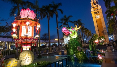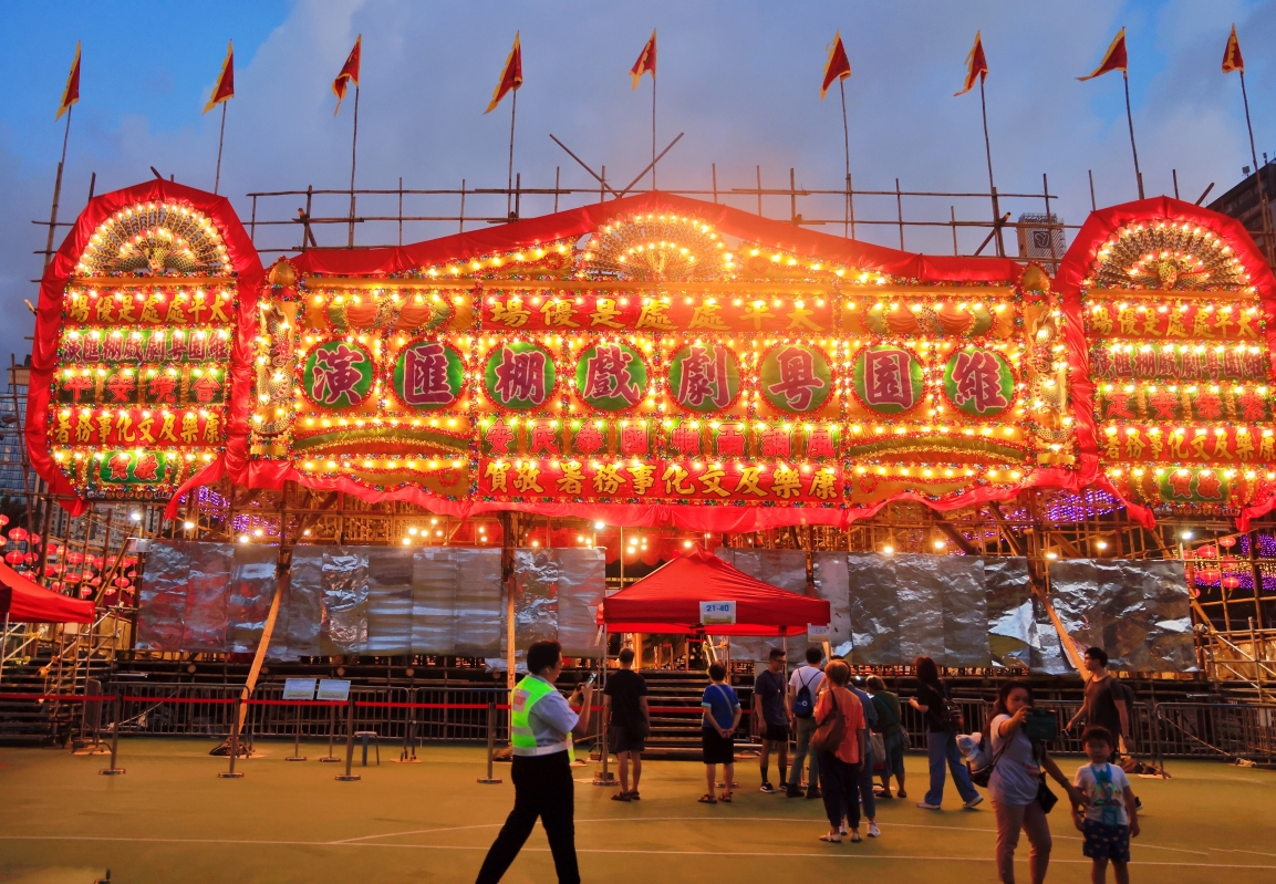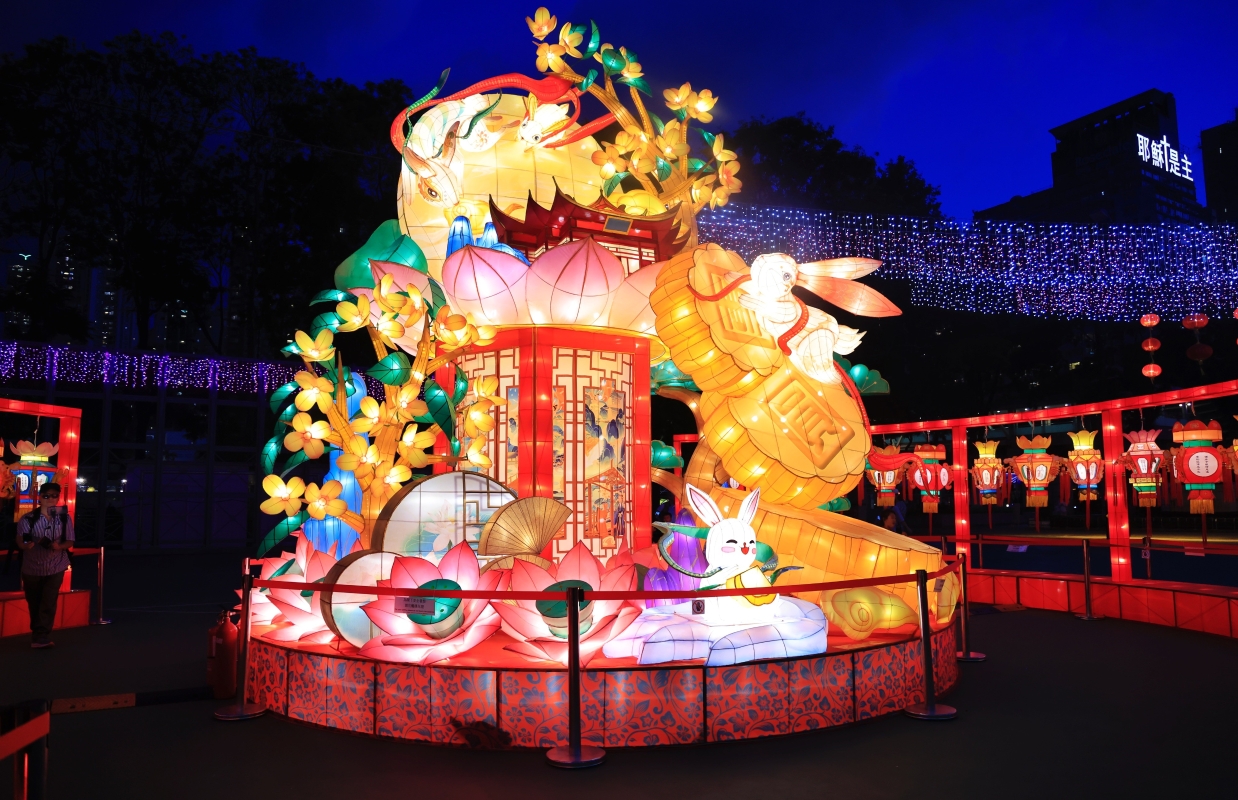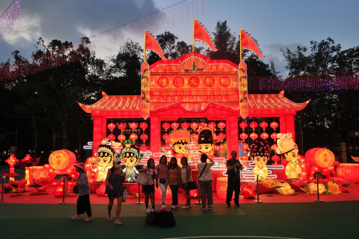 香港新聞網9月25日電(記者 曹文毓) 近日,香港維多利亞公園舉辦市區中秋綵燈會,融入各式薈萃傳統元素的節目,可一次飽覽多項非物質文化遺產,包括粵劇演出、傳統手工藝、舞火龍、猜燈謎等,其中更設有《太平處處是優場─維園粤劇戲棚匯演》。其中,由本地紮作師傅運用傳統方法製作的“月光縈繞・尋燈覓兔”綵燈、由佛山師傅創作的走馬燈“秋意月影耀良宵”、中國四時節氣及以粵劇棚戲為主題的巨型花牌綵燈組等,美不勝收,吸引一衆市民打卡。