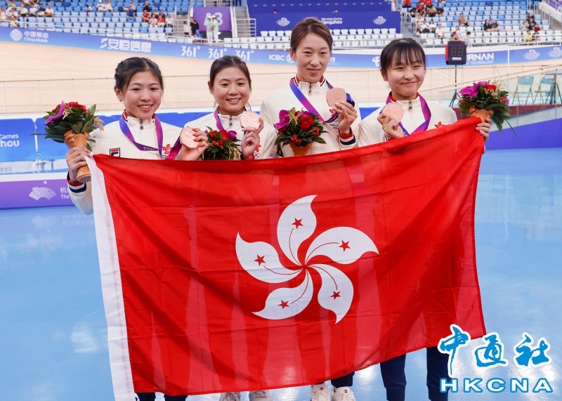 (香港中通社記者 洪少葵攝) 港隊在本屆亞運會捷報頻傳,截至目前,已獲5金8銀14銅,共27枚獎牌,在金牌榜暫列第6。