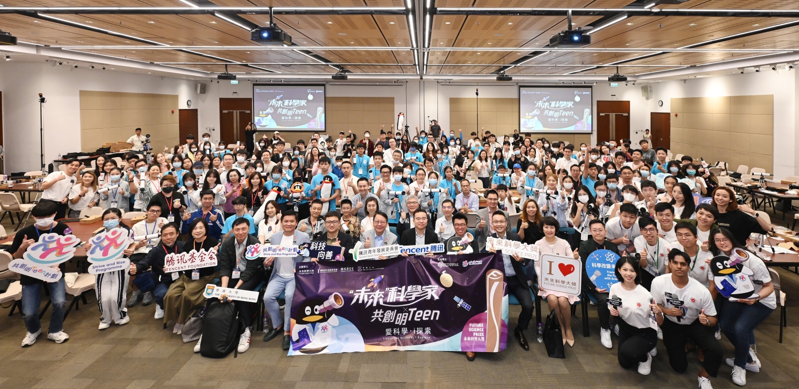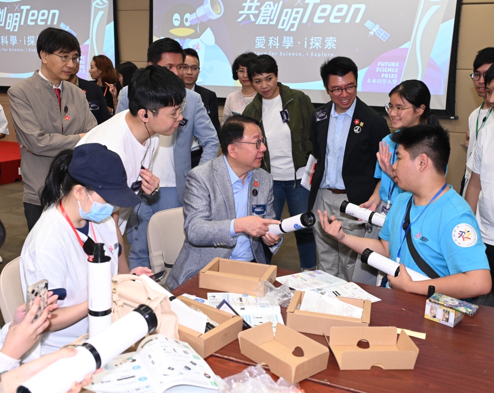 逾200位港青與未來科學大獎得主探索星空奧秘香港新聞網10月1日電 未來科學大獎、騰訊青年發展委員會、騰訊基金會、香港大學、香港科學院攜手9月30日於香港大學校園舉辦“‘未來科學家’愛科學i探索”活動,讓超過200位“共創明Teen”的學員與友師,近距離與“未來科學大獎”獲獎者袁國勇互動交流和從其經驗分享中學習。 香港特區政府政務司司長陳國基、立法會議員張欣宇等嘉賓蒞臨主禮,與袁國勇一起於活動期間和“共創明Teen”學員一起組裝望遠鏡,藉以啟發學員對科學的興趣,感受科學的無限魅力。 陳國基致辭時表示,今天的活動十分豐富,青少年既可與科學家互動交談,亦能進行科學實踐。是次由騰訊全力牽頭聯同多方舉辦創科體驗活動,正是一個非常好的‘政、商、學、民’四方攜手合作示範,推動青年探索香港作為國際創新科技中心的發展機遇,更好規劃自己的未來路向。