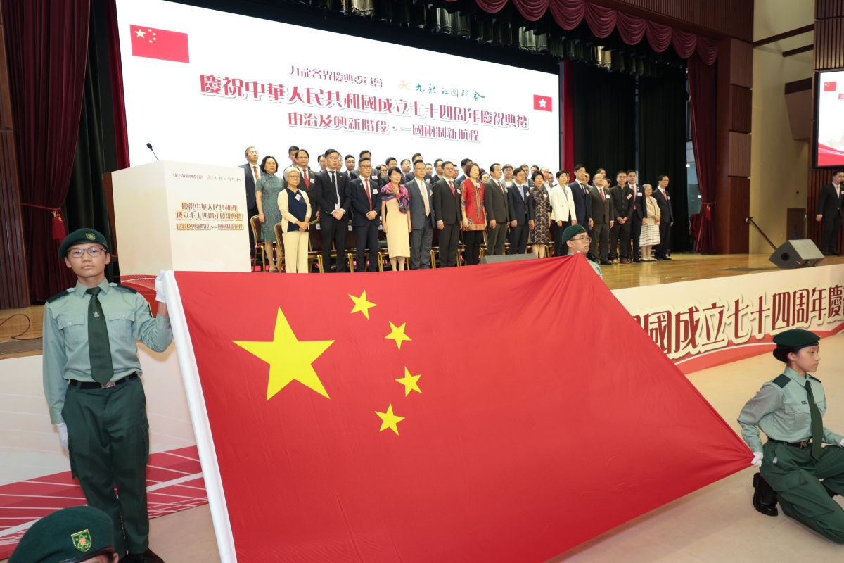 香港新聞網10月1日電 為慶祝中華人民共和國成立74周年,由香港九龍社團聯會主辦的“慶祝中華人民共和國成立74周年慶祝典禮”10月1日假尖沙咀街坊福利會舉辦。勞工及福利局孫玉菡局長、中聯辦九龍工作部祝小東副部長、全國人大常委會李慧琼委員、海關何珮珊關長、懲教署黃國興署長、民政事務總署易志宏副署長、九龍社團聯會連浩民首席會長、徐莉理事長、簡志豪監事長、林德興常務副理事長等蒞臨活動,與大眾市民歡聚一堂,一同祝賀中華人民共和國成立74周年的非凡時刻。