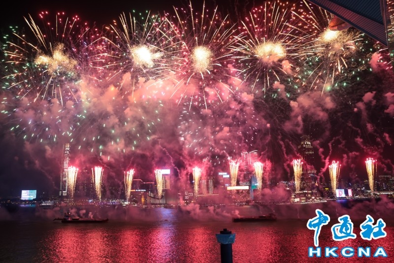 香港中通社10月1日電(香港中通社記者 陳卓儀 陳偉根)10月1日,香港為慶祝中華人民共和國成立74周年,時隔五年再次舉行盛大國慶煙花匯演。23分鐘、31888枚煙花,維港兩岸不時響起歡呼聲、掌聲,市民十分盡興。