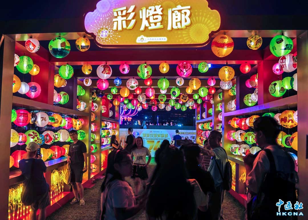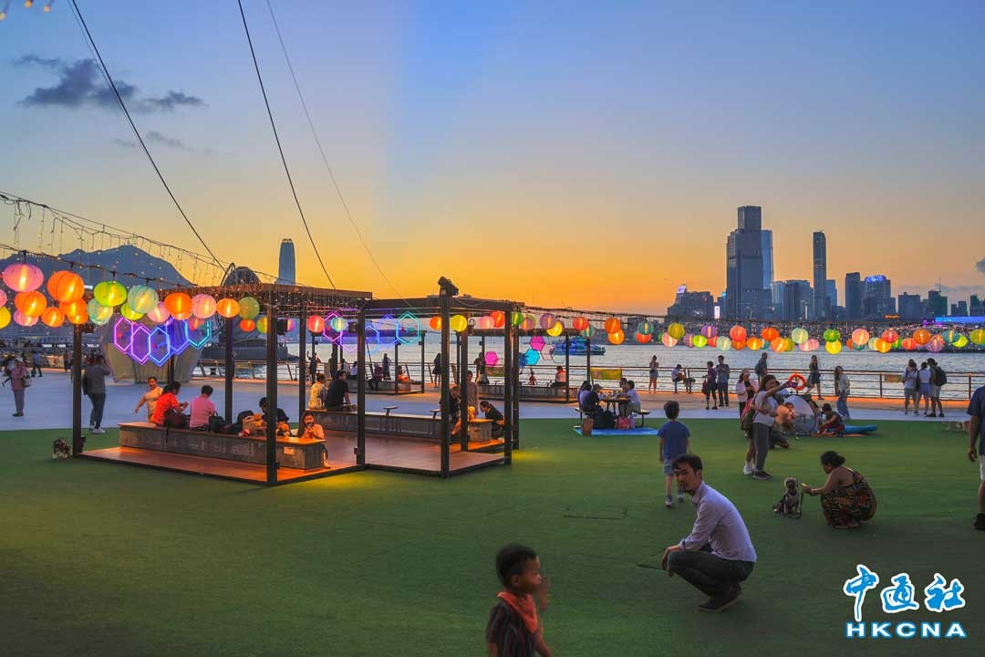 9月30日中秋節翌日,香港市民在添馬公園賞花燈。(香港中通社記者 曹文毓攝)