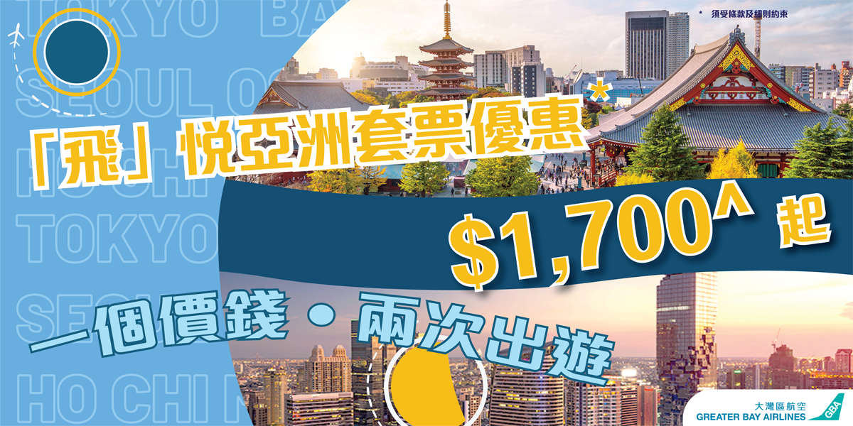 香港新聞網10月6日電 大灣區航空早前的組合票價受市場歡迎,現再度推出“飛”悅亞洲套票優惠,由即日起至10月31日,客戶可以港幣1,700元起,購買任何2個亞洲航點的來回機票共2張。 此套票優惠適用於2024年3月26日或之前從香港出發前往東京、大阪、首爾、台北、曼谷或胡志明市的大灣區航空航線;而首個旅程須於2023年12月21日或之前出發。每程停留日數多達14天。套票優惠只適用於同一位乘客。 票價除了包括每程7公斤手提行李限額之外,現加送20公斤託運行李限額,更能滿足旅客所需。