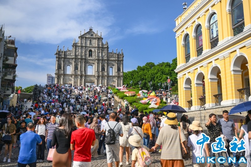 10月1日,旅客在澳門大三巴牌坊前。香港中通社圖片 今年國慶假期的日均旅客逾11.6萬人次,與去年2022年國慶假期相比,上升366.4%;與今年勞動節相比,上升18.7%;這個國慶假期日均旅客與2019年同比,客量恢復接近8成4。 訪澳旅客主要來自內地,約70.8萬人次,占76%;其次是香港及台灣地區旅客,分別約17.2萬、1.1萬人次,各占18.5%、1.2%。 據業界提供的資料顯示,中秋國慶假期,澳門酒店業場所的平均入住率為87.9%,較去年國慶假期上升23.7個百分點。當中10月1日的入住率最高,達94.3%,創今年新高。(完) 【編輯:馬華】
