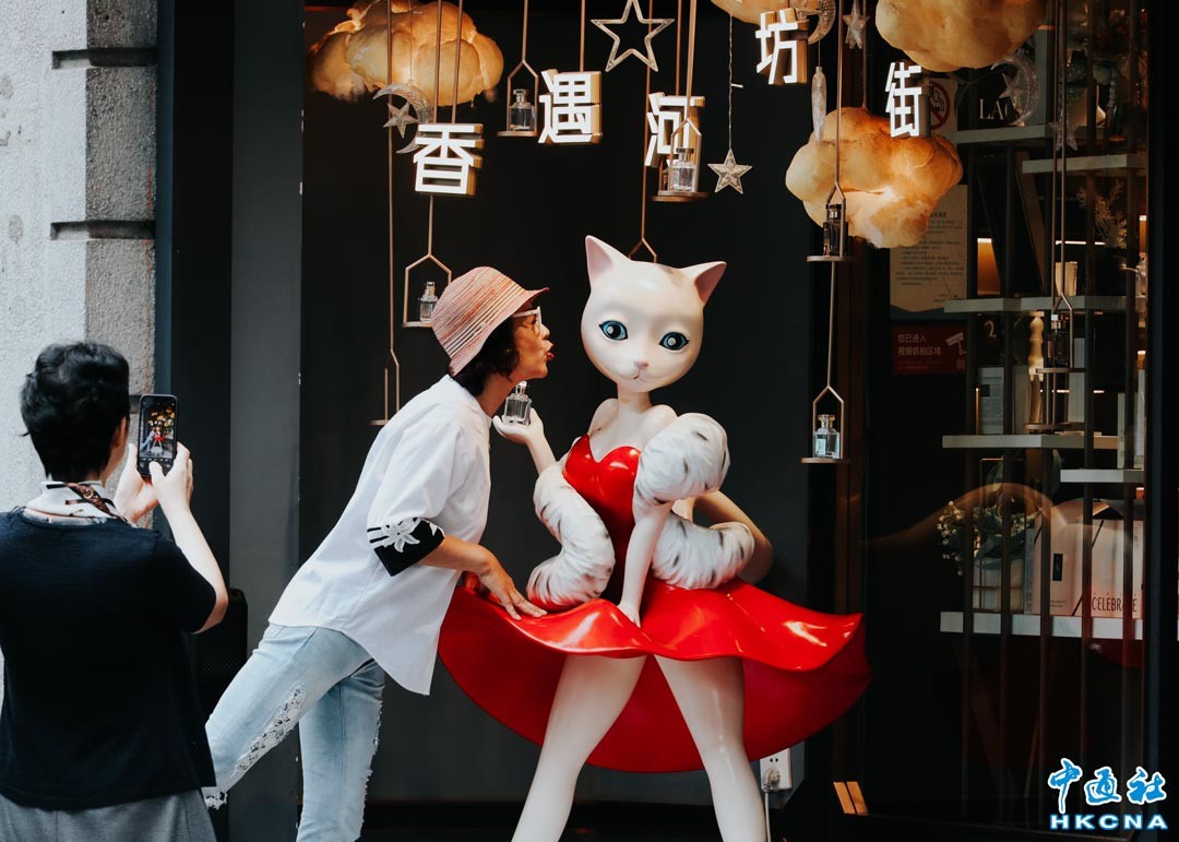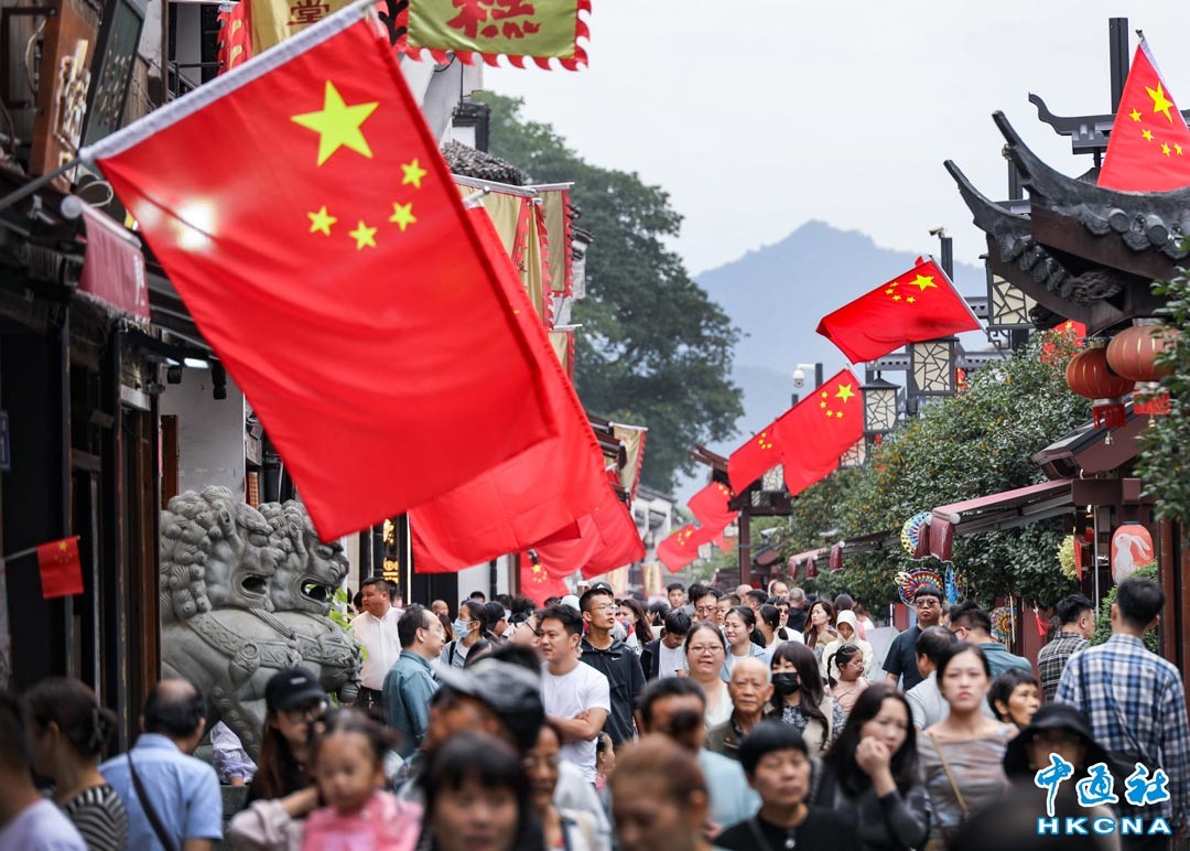 10月6日,杭州著名景區南宋御街商圈非常熱鬧,中秋國慶連假和亞運會的帶動下,令杭州城一片歡騰景象。(香港中通社記者 洪少葵攝)