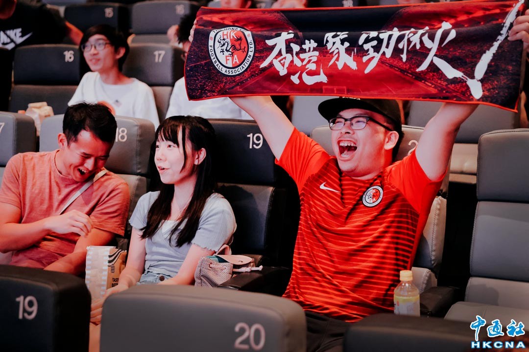 中國香港隊在亞運男子足球賽歷史性打入四強,10月4日,傍晚6點跟日本爭取決賽席位。當日,大批球迷在銅鑼灣一間電影院觀看比賽,為中國香港隊加油。(香港中通社記者 謝光磊攝)
