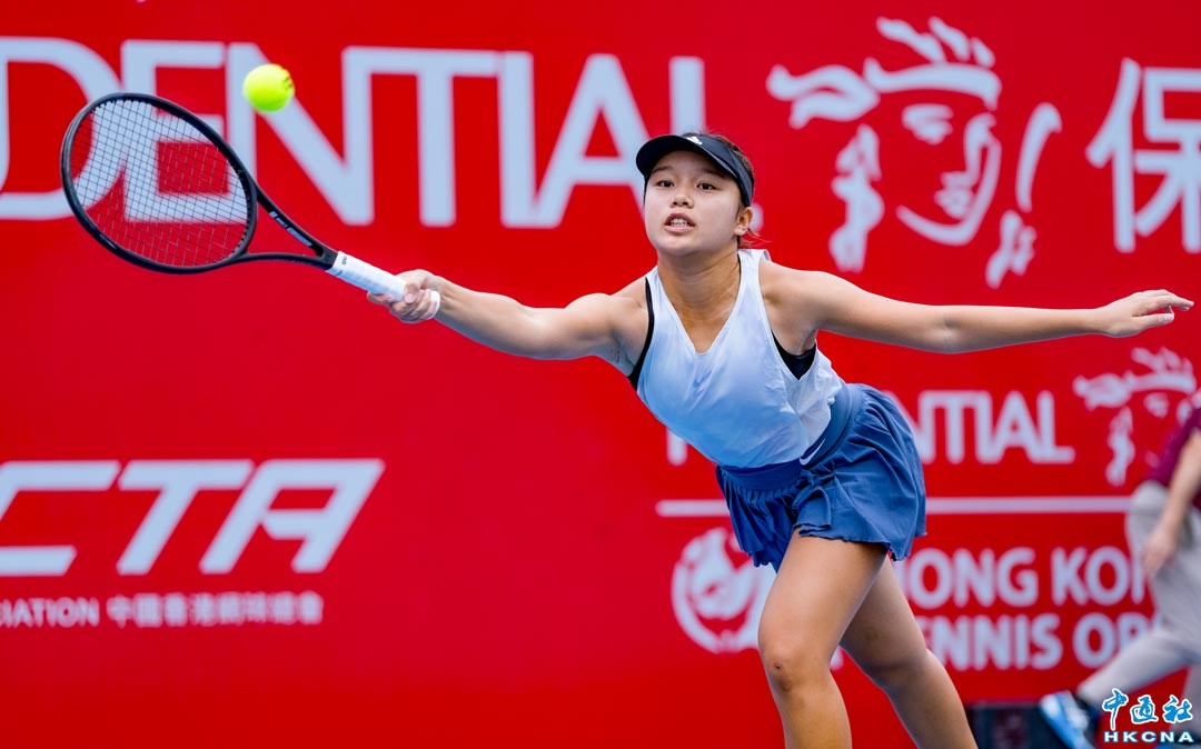 10月7日,2023香港網球公開賽在香港特別行政區維多利亞公園網球場開賽,該公開賽是國際女子網球協會(WTA)250級別巡回賽之一,設單打和雙打項目,決賽將於10月15日進行。圖為現時香港青少年排名第一位的謝善瑜在比賽中擊球。 香港中通社圖片