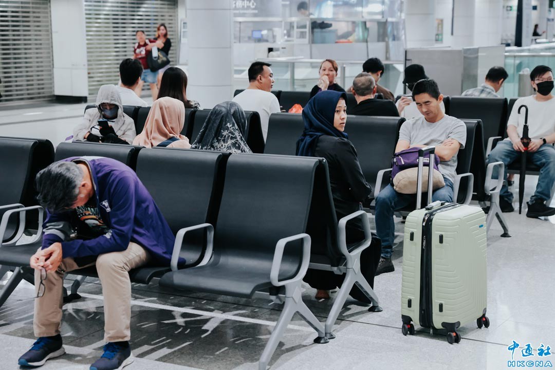 10月8日,受颱風“小犬”影響,香港天文台晚7時發出九號烈風或暴風風力增強信號,8時25分發出黃色暴雨警告信號。9號風球下港鐵即時停駛露天路段,然而當時有不少市民正使用港鐵服務,大批乘客被困在車站。港鐵表示,各車站今晚會盡量為受影響乘客提供協助,乘客如有需要可在車站暫避,直至天氣狀況改善。圖為當晚9時30分,紅磡站內外均擠滿人潮,的士站大排長龍,只有零星的士到場接載。(香港中通社記者 謝光磊攝)