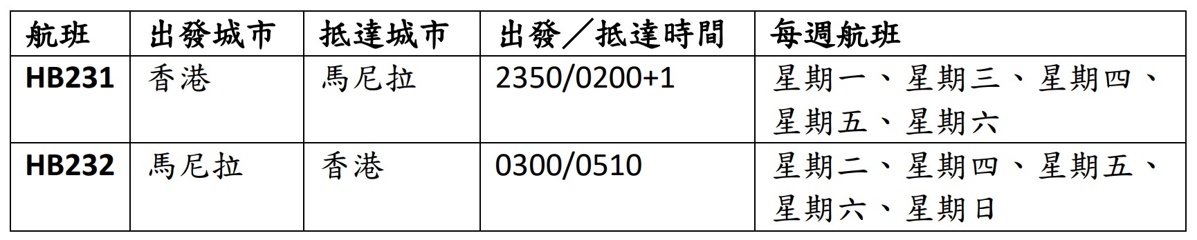 大灣區航空的香港—馬尼拉航班詳情。 此新航線採用全經濟艙規格的波音737-800客機。如欲預訂機票,可前往大灣區航空網頁(www.greaterbay-airlines.com)、使用手機應用程式或與各大旅行社聯絡。 【編輯:黃璇】