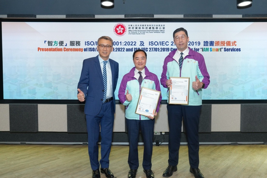 黃志光(中) 圖源:香港特區政府新聞處 兩項ISO國際標準認證由國際標準化組織和國際電工委員會制定,旨在提供一套全面架構,列出關於建立、實施、維護和持續改進的要求。 政府資訊科技總監黃志光表示,“智方便”同時在資訊安全和私隱管理獲得國際標準認證,有助加強市民使用的信心,亦能鼓勵更多網上服務提供者通過該平台,提供安全可靠的網上服務。 “智方便”自2020年底推出至今,近240萬登記用戶,用戶可透過身分認證功能登入300項政府及公私營機構網上服務、進行網上交易,以至作出具法律效力的數碼簽署。政府目標在2025年全面採用“智方便”提供一站式數碼服務,以達致政府服務“一網通辦”目標。(完) 【編輯:張依珊】