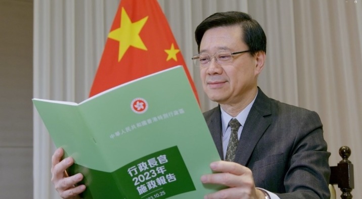 香港新聞網10月25日電(記者 許其皓) 香港特區行政長官李家超25日發表任內第二份施政報告,預告今次主題是“拼經濟謀發展 惠民生添幸福”,沿用綠色封面是代表希望、生命力及和諧。