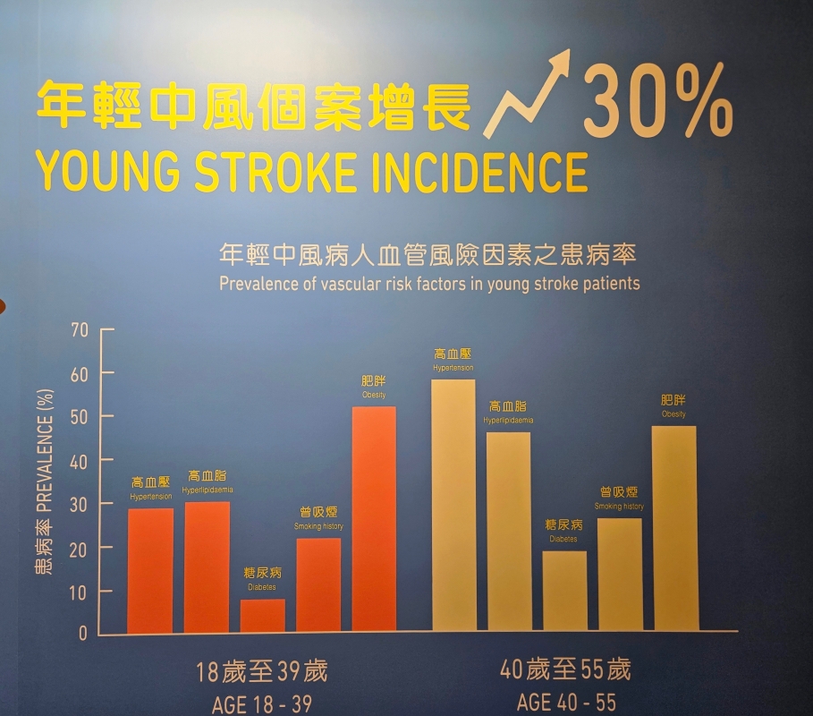 18至55歲年輕中風個案增長30%。(香港中通社記者 黃璇攝) 香港大學中風研究組主任劉巨基醫生亦表示,中風的確有年輕化的趨勢,18至55歲的年輕中風患者在過去20年間增加近3成。當中40至55歲年齡段約55%為高血壓,45%為膽固醇高,20%曾有吸煙習慣,另外亦有部分患者受肥胖問題困擾。他指腦中風的高危因素其實有90%都屬於可改善,可透過戒煙、減少鹽的攝取量、控制血壓等方法降低風險。另外,長者亦容易因為心房顫動而引起腦中風,劉醫生指出,市民可以透過儀器定期進行血壓及心房顫動篩查,預防中風。