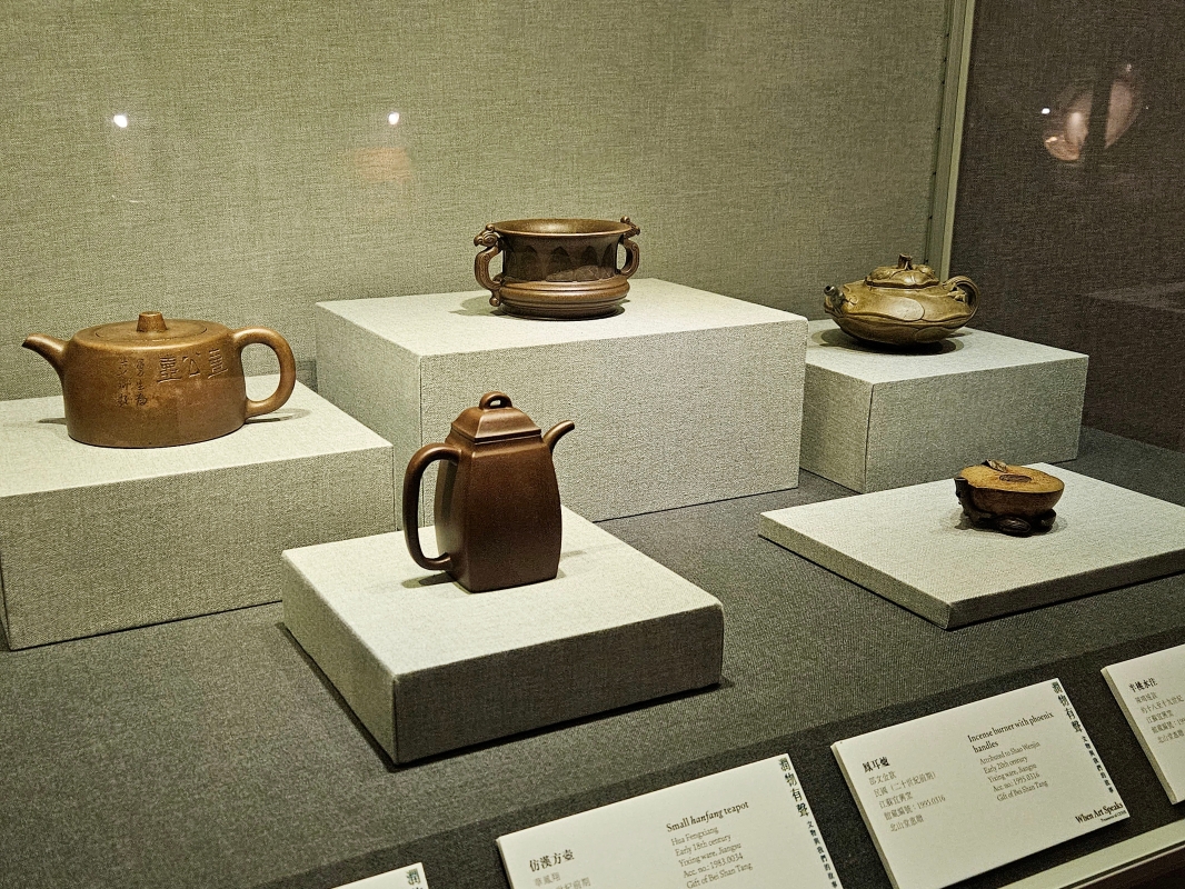 中大文物館目前正進行有關外銷紫砂的專題研究。(香港中通社記者 黃璇攝) 適逢中大校慶,文物館邀請多名中大人,包括李麗珊、林青霞、黃正宜、黃宇軒、黃修平、繆浩昌等,一同探索大學所藏的珍貴文物,並錄音分享自己對文物的詮釋及聯想。觀眾在文物旁,戴上主辦方提供的耳機,按下按鈕,即可聽到這些中大校友對文物的解讀語音。 中大文物館館長姚進莊表示,“通過這個契機,我們可以追溯自己文物館的歷史,以及了解幾代館員的努力。”他亦介紹,這幾十年中,中大文物館一直將研究和推廣放在同等重要的位置,透過研究去做推廣,取得了一定的成就。 【編輯:黃璇】