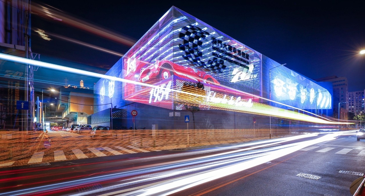“澳門大賽車博物館藏影︰70傳奇”光雕表演正式揭幕。