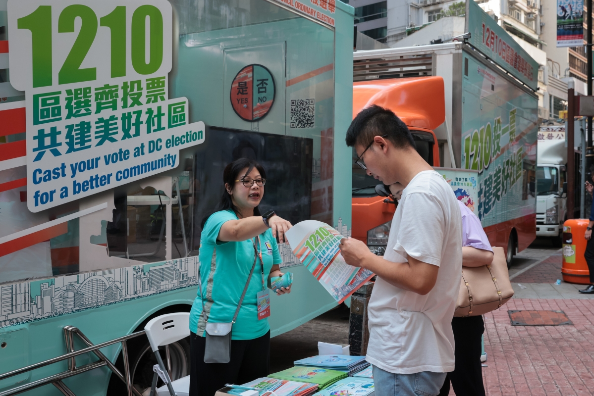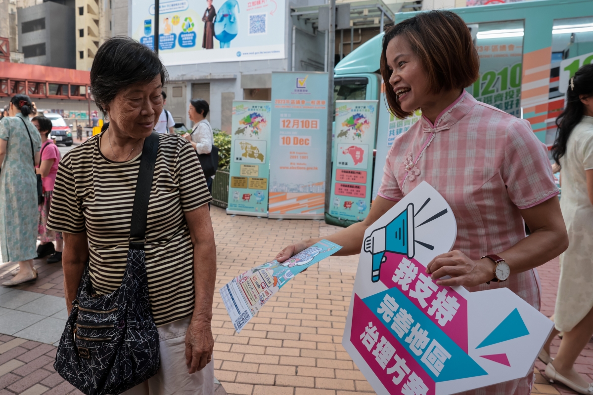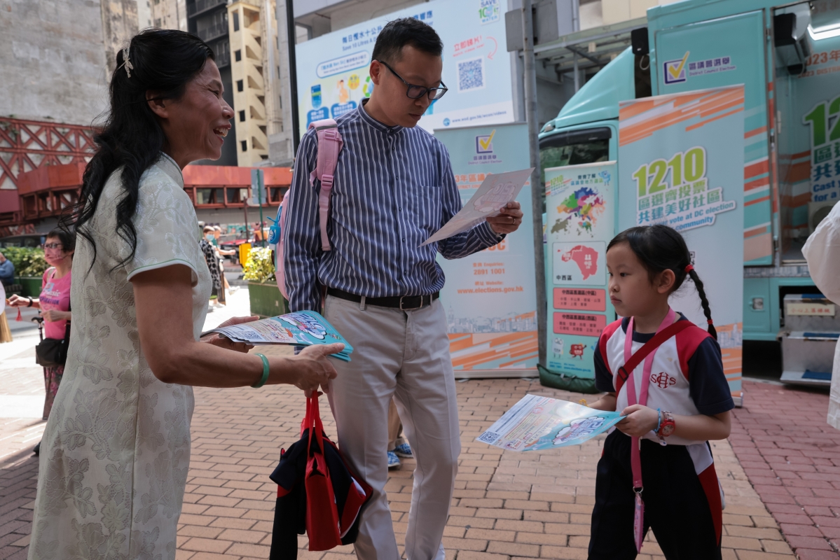 圖為志願者向市民派發區議會選舉宣傳單張。