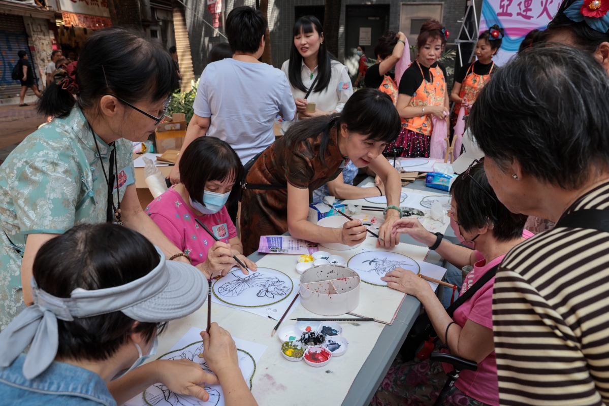 圖為市民在活動現場體驗畫團扇等傳統文化。 【編輯:謝光磊】