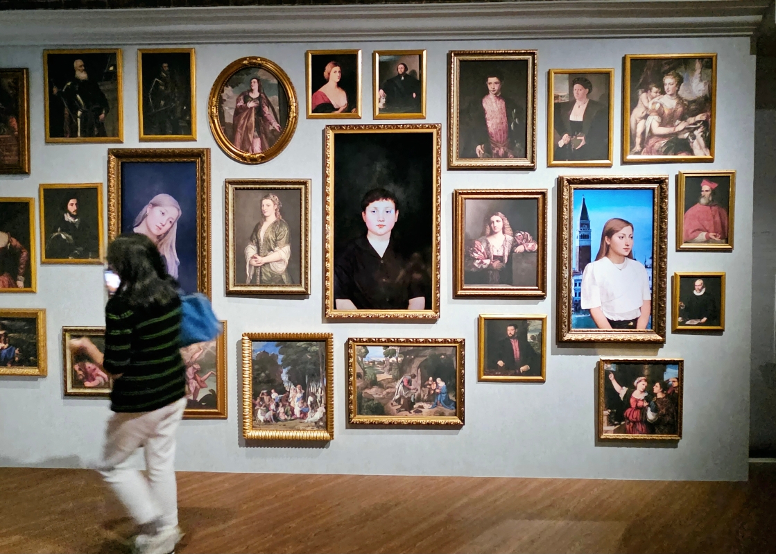 展廳一隅。(香港中通社記者 黃璇攝) 展廳的六個部分之“宛如劇場的威尼斯”主要聚焦當時威尼斯的一眾顯赫人物;“威尼斯女神”匯聚了以女性為主題的畫作;“騎士、藝術家和兒童肖像畫”之展品主要是畫家獲委託繪製的私人肖像畫;“神話與古典”展出的畫作則描繪了古代歷史和神話故事;“戰士與戰場”探討提香和其他威尼斯畫派藝術家所描繪的歷史題材、官員肖像和戰爭場面等;“大自然與日常生活的描繪”涵蓋眾多畫家如何將自然風光、日常感受融入畫作,展示對油彩的準確掌握。 香港藝術館同時也邀請了香港本地藝術家梁志和與陳鈞樂,他們從威尼斯畫派作品中汲取靈感進行藝術創作,以21世紀香港藝術家的獨特視角,與16世紀意大利文藝復興大師展開一場跨越時空的藝術對話。 【編輯:黃璇】