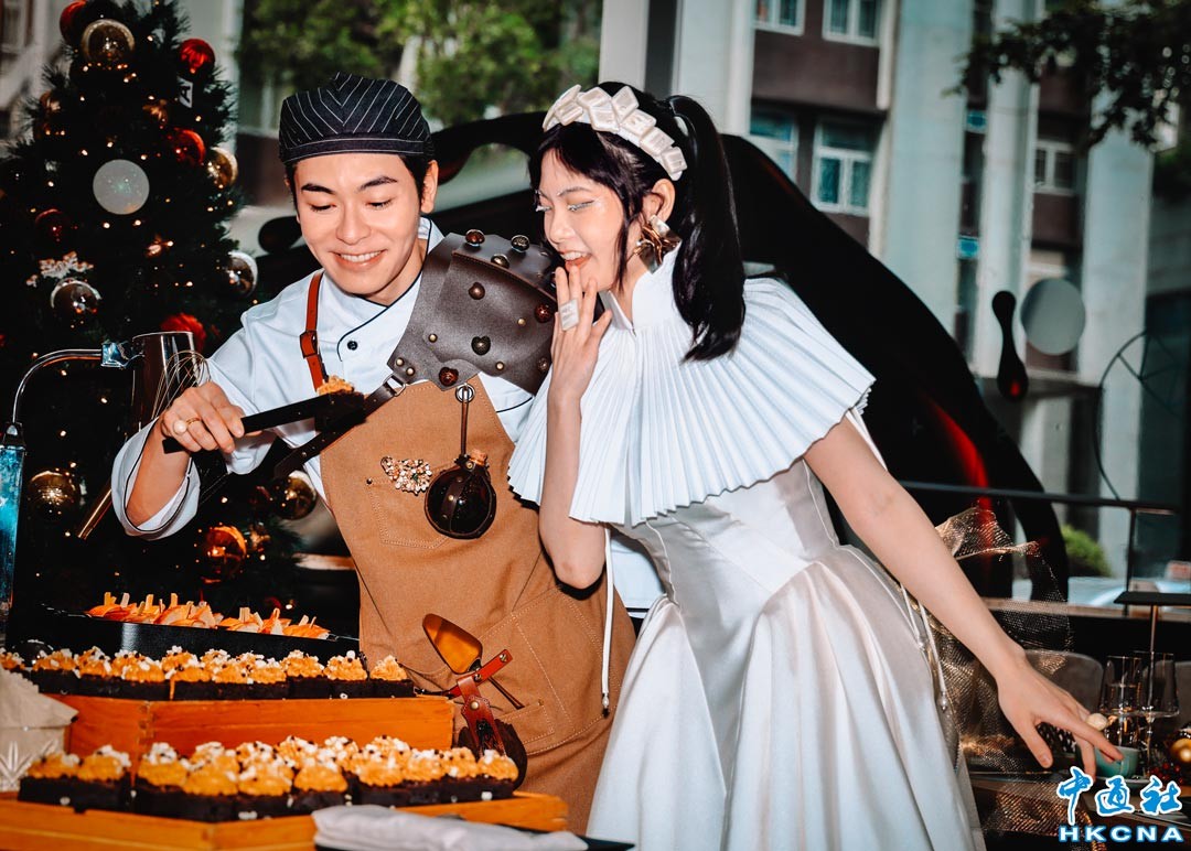 香港太古地產2023白色聖誕市集即將於11月30日至12月3日以及12月8至10日在糖廠街舉行,以“CHOCOLAND!”為主題,將糖廠街化身巨型朱古力店,推出朱古力主題美食及餐飲,以及聖誕禮品攤位,並設置“可可自拍亭”、“可可遊樂場”、“聖誕朱古力屋”等多個打卡位。圖為11月14日傳媒預展。 (香港中通社記者 曹文毓攝)