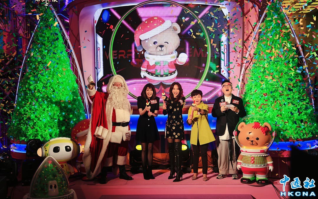 11月16日,香港海港城在海運大廈露天廣場舉行“Merry Spacemas 聖誕太空熊遇記”亮燈儀式,藝人莫文蔚(左二)出席。(香港中通社記者 曹文毓攝)