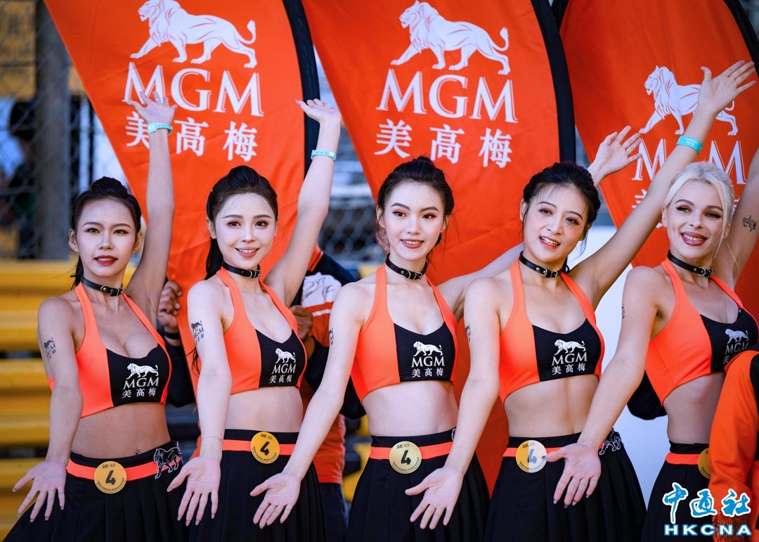11月18日,模特在賽事中心。當日,在第70屆澳門格蘭披治大賽--澳門格蘭披治電單車——第五十五屆大賽中,英國選手赫爾文領先近30秒的成績完成12圈賽事奪冠。香港中通社圖片