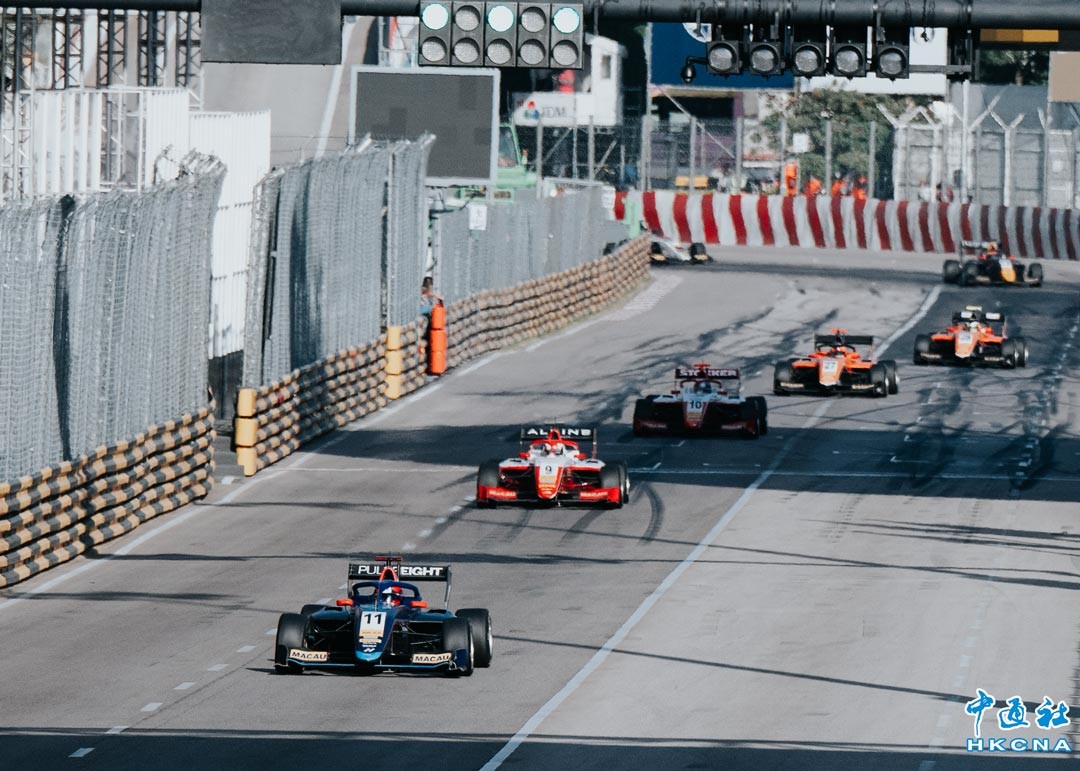 11月19日,英國車手布朗寧在比賽中。第70屆澳門格蘭披治大賽車壓軸之戰,澳門格蘭披治三級方程式大賽——國際汽聯三級方程式世界盃當日下午3時半點開賽,11號英國車手布朗寧表現出色奪冠。香港中通社圖片