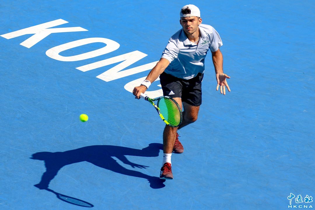 11月19日,中國網球巡回賽香港站開賽。在首日舉行的男子單打預選賽首輪的比賽中,Brady Anderson以2:0戰勝郭智鋮。圖為Brady Anderson在比賽中。(香港中通社記者 許其皓攝)
