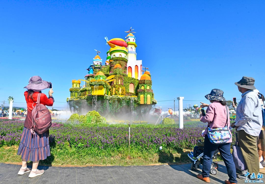 “2023台中國際花毯節”運用20萬株花草、23種花卉,打造2公頃展區;更推出史上最高、台灣首座漂浮空中花卉城堡“漂浮花都”,吸引許多民眾前往打卡。“花毯節”展期將至12月3日止。香港中通社圖片