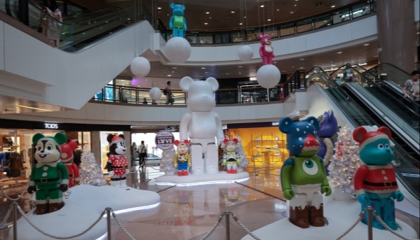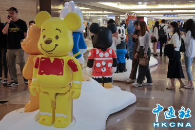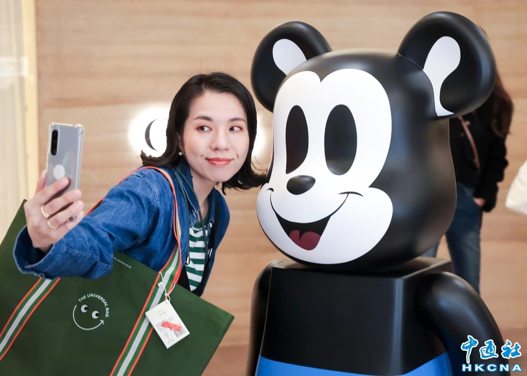 11月23日,適逢迪士尼100周年,香港海港城與BE@RBRICK合作,推出100隻2000%迪士尼角色BE@RBRICK模型 (約140厘米高),於商場不同地點列陣,除了有為人熟悉的米奇與好友系列、迪士尼經典系列及公主系列之外,還有大受歡迎的彼思、Marvel 和星球大戰角色。圖為玩偶吸引大批市民及遊客拍照打卡。(香港中通社記者 謝光磊攝)