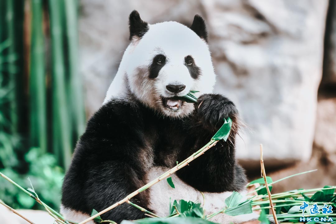 11月24日,一連7日的四川自然保護周在香港海洋公園開幕,由四川省林業和草原局、成都市人民政府、香港特區政府環境及生態局三方首次攜手主辦,旨在展示四川的生物多樣性和保育工作。為加強合作保育珍稀物種,海洋公園與四川保育單位簽署新的合作協議,香港將迎來新一批小熊貓。圖為海洋公園內只有盈盈及樂樂兩隻大熊貓,海洋公園公司主席龐建貽期望未來再有大熊貓到港。(香港中通社記者 謝光磊攝)