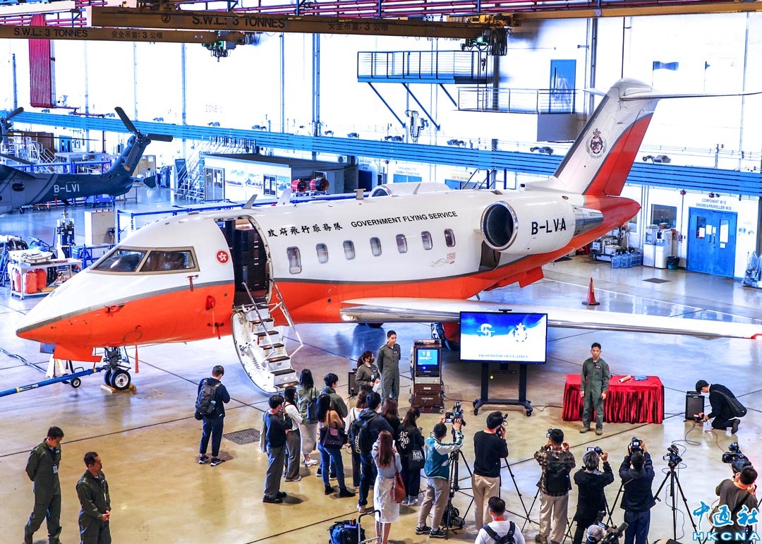 香港政府飛行服務隊及香港天文台11月24日於政府飛行服務隊總部舉辦“熱帶氣旋偵察任務──下投式探空系統”記者會,介紹熱帶氣旋偵察任務的背景、任務細節及後期的數據分析工作等,並簡單示範如何使用下投式探空系統。圖為下投式探空系統的飛機。(香港中通社記者 許其皓攝)