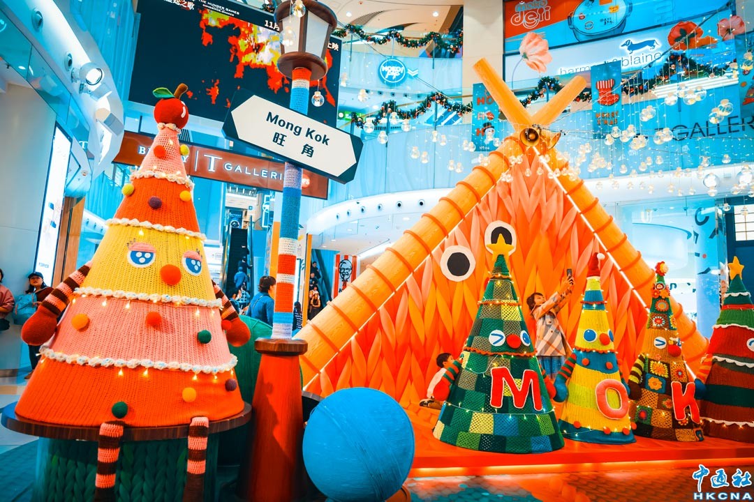 臨近聖誕節,香港旺角MOKO新世紀廣場呈獻“MOKO KNIT OUR TOWN”聖誕裝置,吸引不少市民和遊人打卡。(香港中通社記者 曹文毓攝)