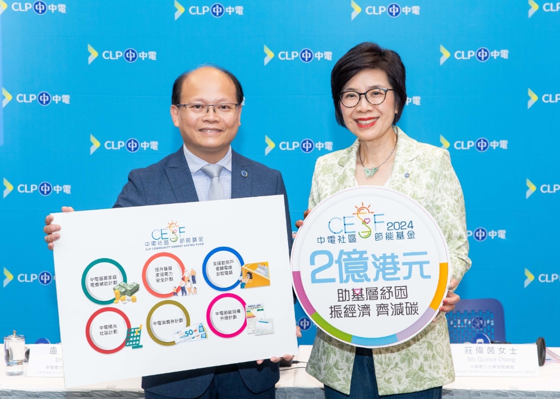 中華電力企業發展總裁莊偉茵(右)及中華電力客戶成功及銷售總監盧志華,介紹中電社區節能基金將於2024年撥款2億港元推出的多項社區支援計劃。(圖片:中電) 中電社區節能基金自推出以來一直為弱勢社群提供多方面支援。在2024年,中華電力將透過基金撥款5000萬港元推出中電基層家庭電費補助計劃,分別向5萬個65歲或以上的單老或雙老家庭、低收入家庭及殘疾人士,每戶提供600港元的電費資助;以及向2萬個劏房住戶,每戶提供1000港元的電費資助。 此外,中電今年推出長者家居電力安全計劃,社區反應正面,2024年將增加撥款至950萬港元推出提升基層家居電力安全計劃,聯同社區夥伴安排合資格的工程人員,免費為基層家庭檢查及維修家居電力裝置,改善家居安全。新一年度計劃更涵蓋少數族裔和低收入家庭,預計約有2000個家庭受惠。 政府在施政報告提出今年內推出“社區客廳試行計劃”,為劏房住戶提供共用設施,中電將撥款300萬港元資助社區客廳添置具能源效益的電器及學習配套設施。此外,中電將撥款約800萬港元,繼續為經社區夥伴轉介的劏房個案重新鋪設電線,以便安裝獨立電表,改善劏房住戶的電力安全,並向2000個過渡性房屋住戶提供每戶2000港元的節能電器資助,提升家居能源效益。 為支持本地可再生能源發展,同時加深年青人對可再生能源的了解,提高應對氣候變化的意識,中華電力將撥款2000萬港元,資助合資格學校及社福機構購買及安裝太陽能發電系統。 另外,繼2021年連續兩年推出中電消費券計劃後,中華電力將於2024年撥款約5800萬港元,向約58萬個低用電量住宅家庭,以及享有長者電費優惠的客戶,每戶派發100港元的中電消費券,鼓勵市民留港消費。受惠客戶可於約1000間參與計劃的零售商店和食肆使用消費券,為期6個月。 (完) 【編輯:黃璇】