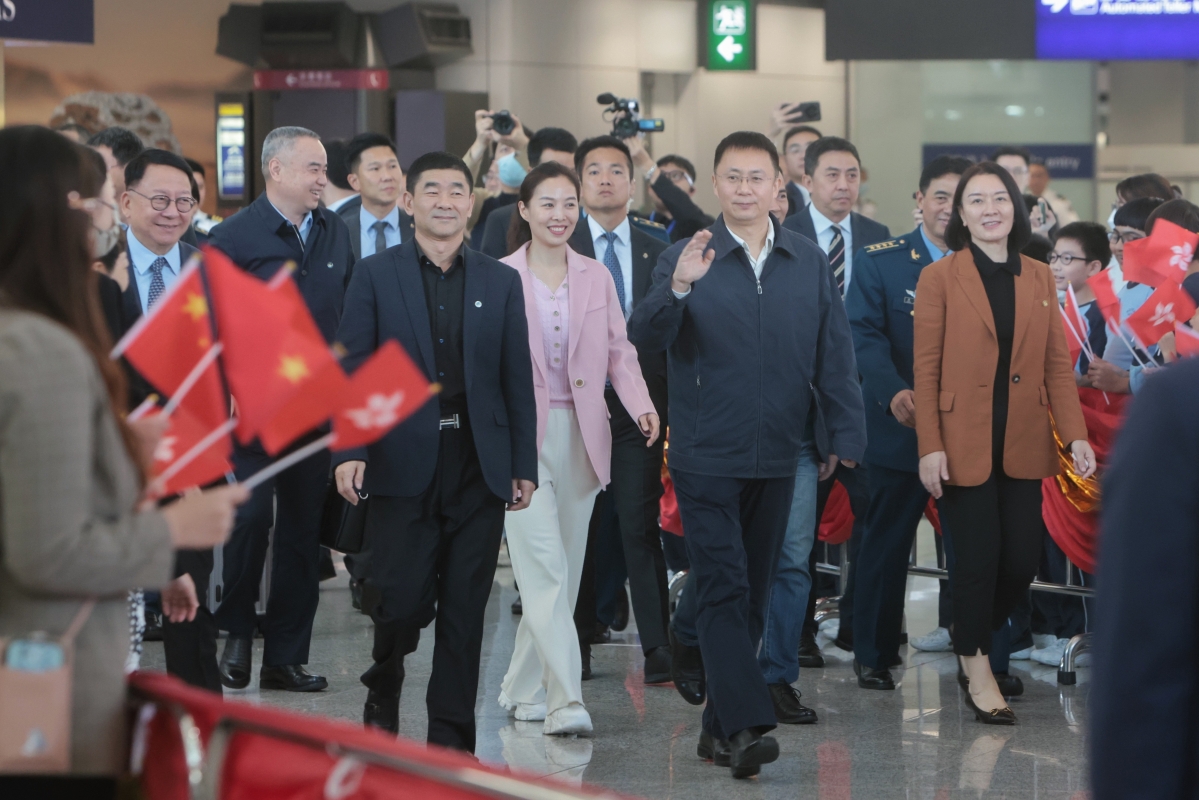 中國載人航天工程代表團抵達香港,開啟對香港特區為期四天的訪問。香港特區政府政務司司長陳國基、中央政府駐港聯絡辦副主任盧新寧、外交部駐港特派員公署署理特派員李永勝等在機場迎接。