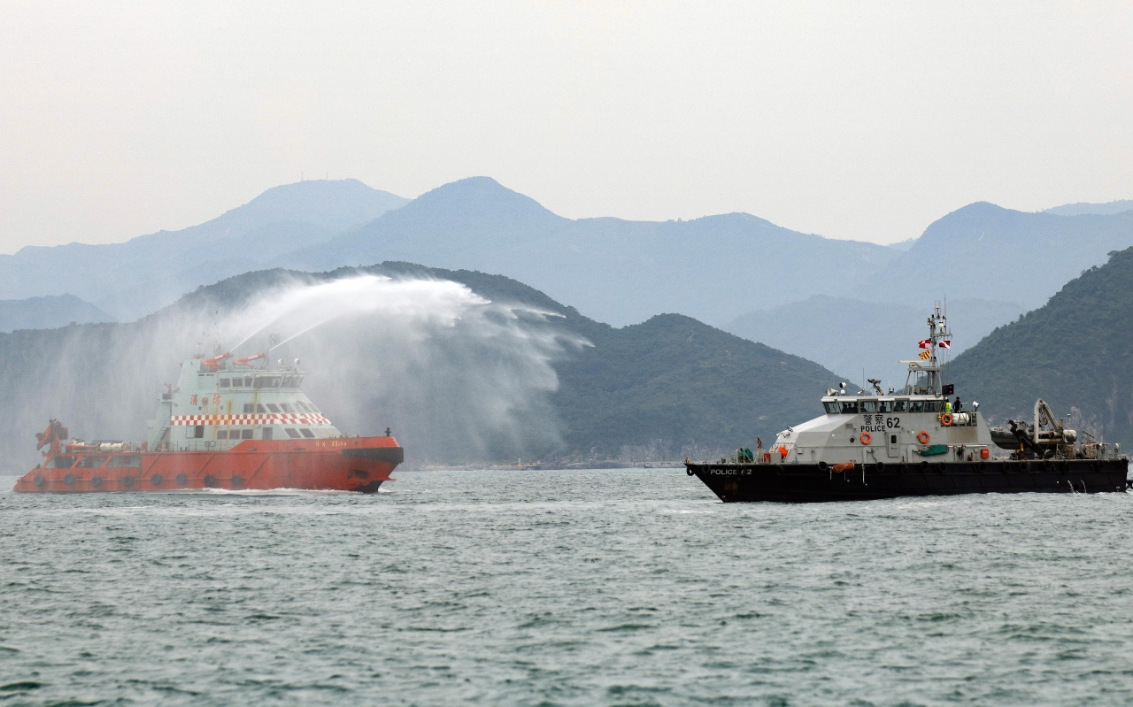 香港水警在演習中