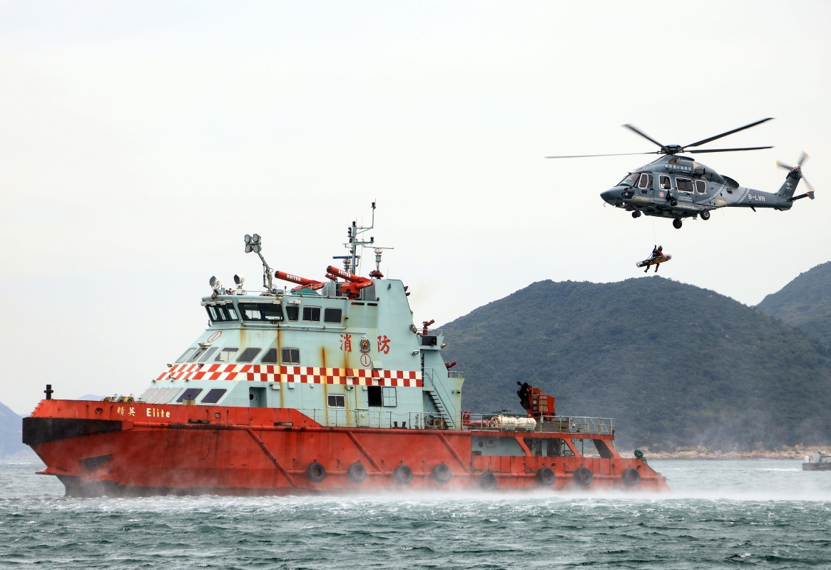 香港新聞網11月29日電(記者許其皓) 11月29日,香港特區政府民航處在香港西貢半島東南牛尾海附近海域舉行短程搜救演習,是次演習旨在加強與駐港部隊及其他空難搜救單位的合作與協調,促進各空難搜救單位之間的技術交流,以便一旦出現意外事故,有關各方可高效應對處理。 演習當日共有九個政府部門及搜救單位參與,包括民航處、駐港部隊、政府飛行服務隊、水警、消防處、海事處、民眾安全服務隊、醫療輔助隊和香港天文台。