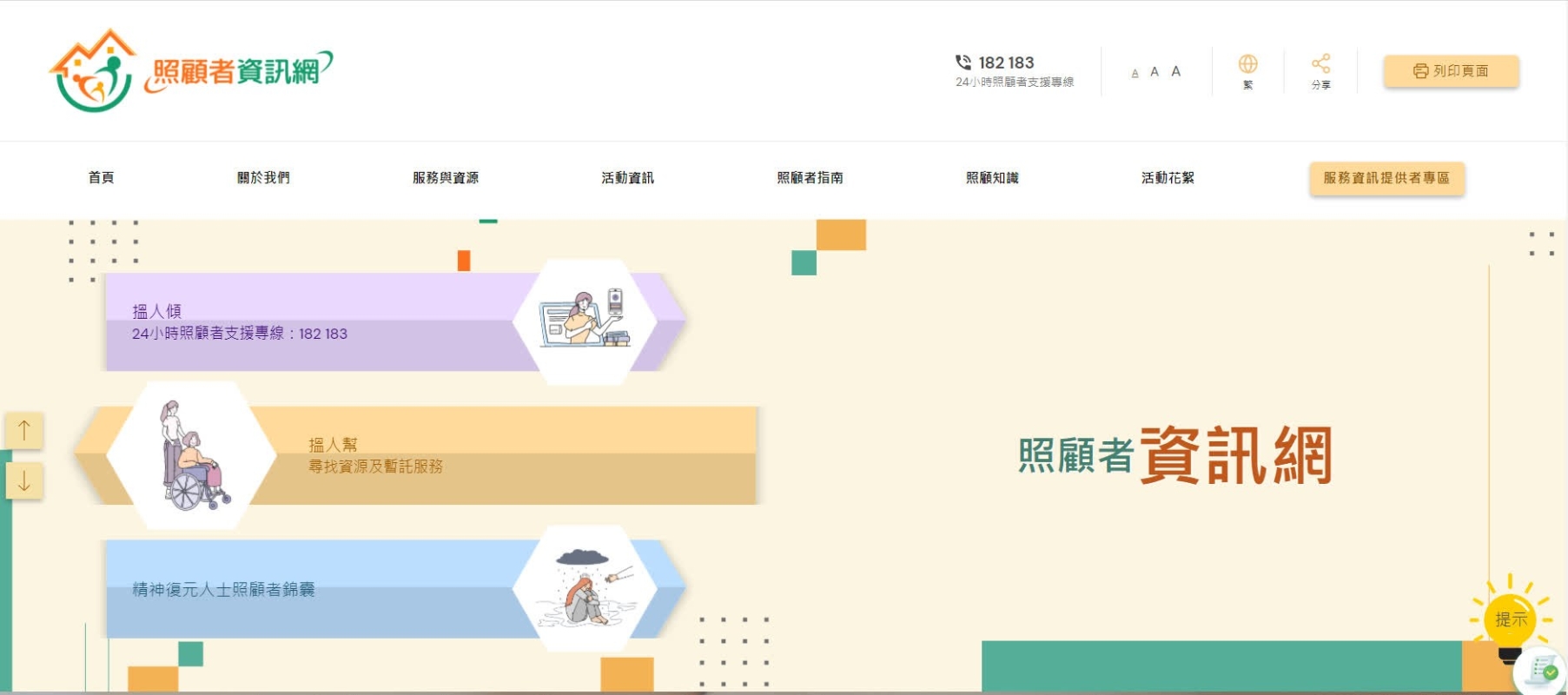 資訊網由社署與香港賽馬會慈善信託基金合作,並委託香港樹仁大學建立。網站具有便利使用者瀏覽的介面,並加入簡易的搜尋功能,方便照顧者取得全面和最新資訊,讓他們得到所需的支援。 為讓資訊網的設計迎合照顧者的需要,社署及仁大在建立資訊網前廣泛收集照顧者的意見。資訊網的內容涵蓋為長者、殘疾人士、精神復元人士、特殊學習困難兒童及其照顧者提供的服務、照顧技巧,以及為照顧者提供的社區活動和資源等。 網站已連結照顧者支援專線和暫託服務/緊急住宿空置名額查詢系統,便利照顧者隨時尋求支援。 (完) 【編輯:徐嘉儀】