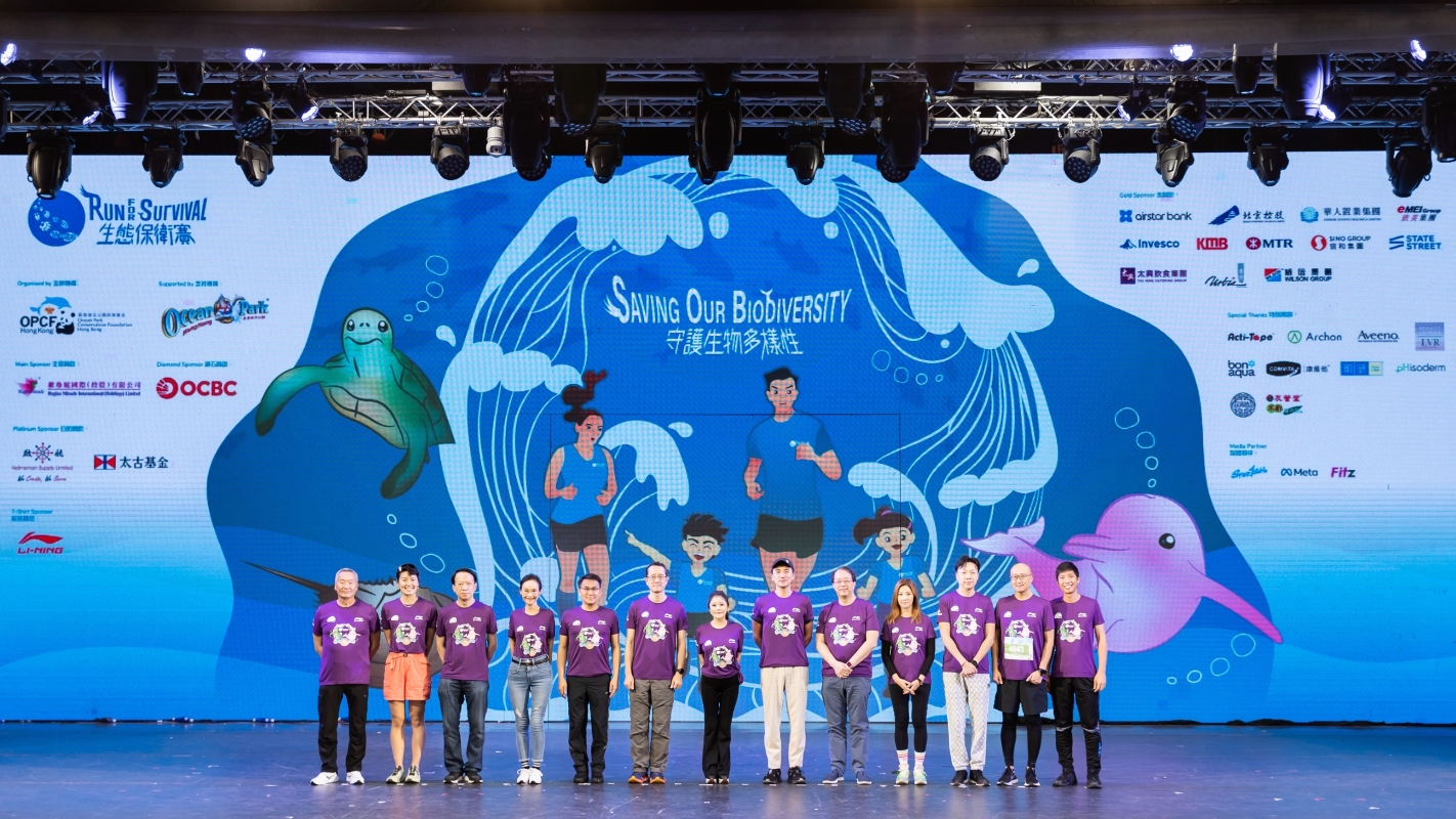 圖片來源:海洋公園。 頒獎典禮上,主禮嘉賓向大眾傳達生物多樣性的重要性,以及介紹海洋生物面對的威脅,同時分享對自然環境友善的小貼士,邀請參與者一起守護生態,共創綠色未來。 香港海洋公園保育基金主席陳晴致辭說,氣候變化、塑膠污染、過度捕撈、非法野生動物貿易及棲息地喪失等因素,對生物多樣性構成種種威脅。有見及此,保育基金多年來積極支援本地及亞洲各地的科研及保育工作,同時推行不同環境教育項目,凝聚一眾愛護自然生態人士的力量,實踐我們對保護生物多樣性的承諾。為了向下一代傳遞保育訊息,賽事今年更新增1公里歡樂跑賽事,一家大小化身“生態保衛戰士”,在玩樂中學習如何守護生物多樣性。 藝人洪永城曾走訪地球各個角落,在不同節目中展示自然界多姿多彩的面貌。對於保育生物多樣性,他有深刻的體會。“地球上的物種豐富多樣,人類與自然生物互為影響、互相依存。當生物多樣性岌岌可危,我希望為環境略盡綿力。除了參與3公里領袖賽為保育基金籌款,亦藉此呼籲大家保護自然裏每一種生物。我們可以從改變日常小習慣做起,例如減少使用即棄塑膠製品,珍惜自然資源及減少環境污染等,另外亦可踴躍參與保育基金多元化的保育工作和活動,親身保護野生物種的棲息環境。”