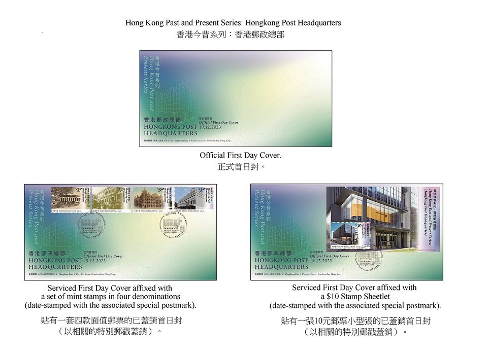 為紀念新大樓的落成及啓用,香港郵政以“香港今昔系列:香港郵政總部”為題發行一套四枚郵票、一張郵票小型張及相關集郵品,展現香港郵政總部在不同時期的面貌和發展。 全線郵政局和網上購物坊“郵購網”(shopthrupost.hongkongpost.hk)5日起發售“香港今昔系列:香港郵政總部”正式首日封。這套特別郵票及相關郵品將於19日起在各郵政局及“郵購網”發售,而貼有特別郵票的已蓋銷首日封、套摺(珍藏版)及極限明信片只限在集郵局發售。 各郵政局將於19日為所有正式首日封/紀念封/註明首日字樣和本地地址的自製封,提供即時人手蓋印服務。(完) 【編輯:張明臻】