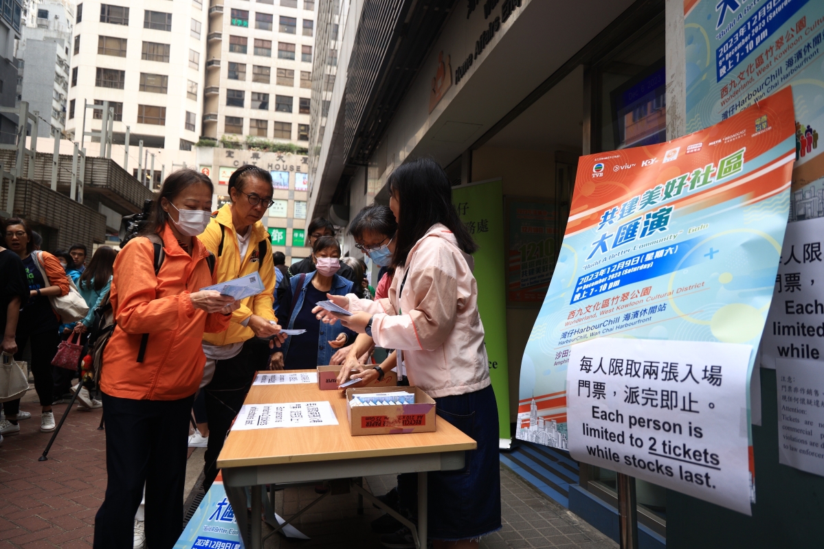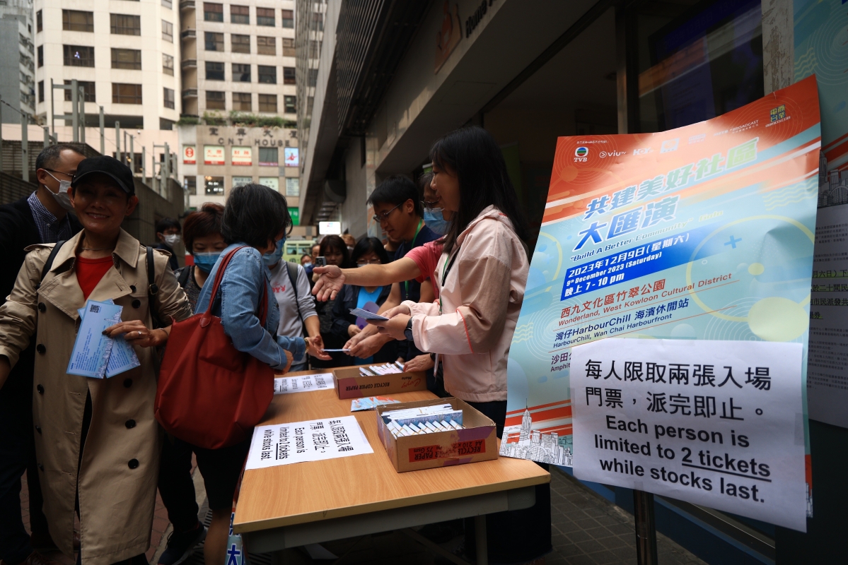 香港新聞網12月6日電(記者 許其皓)12月6日,香港市民領取“共建美好社區大匯演”入場券。為進一步宣揚特區完善地區治理體系及重塑區議會對市民的切身好處,以及積極參與區議會選舉對共同建設美好社區的重要性,香港特區政府將於12月9日晚在西九文化區舉行大型戶外音樂會“共建美好社區大匯演”。