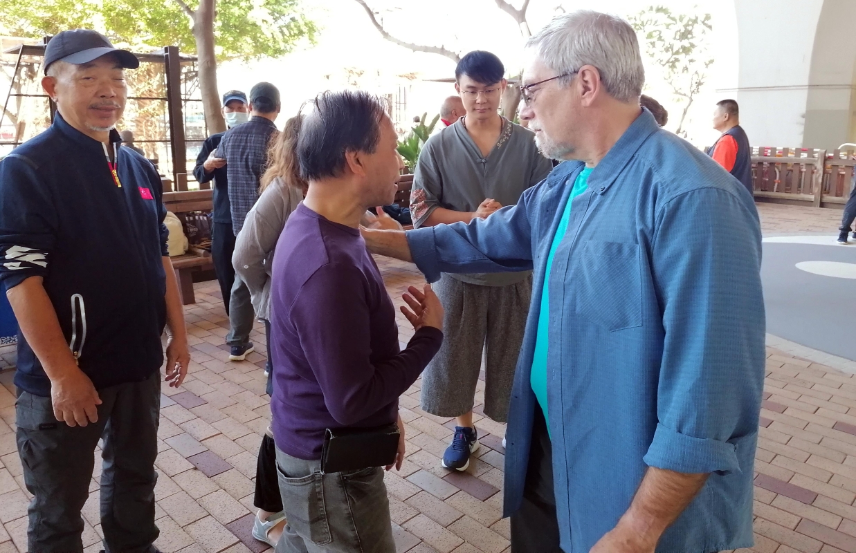 施雄鵬、尤贊成、譚德番、羅彩鳳、李逸朗、梁百樂、陳柏仲師傅與來自紐約的董家太極拳拳友交流