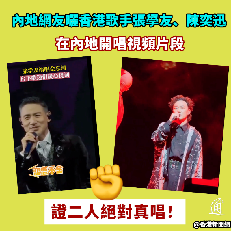 香港新聞網12月7日電 台灣搖滾樂團五月天近日陷假唱風波,引發網友關注歌手在演唱會上是否真唱這一話題。近日,恰逢香港歌手張學友、陳奕迅在內地開唱,有內地網友分享他們意外忘詞的演唱片段,感嘆雖“略有瑕疵”,但二人絕對是真唱。 五月天今年以來在北京、上海、廣州、武漢等地舉辦多場巡迴演唱會,但就在他們上海演唱會結束隔天,11月22日,內地音樂博主“聲理學”在社交平台發文,稱收到關於五月天演唱會假唱的投稿,認為有關“假唱”性質惡劣。其後,內地視頻網站嗶哩嗶哩(B站)博主“麥田農夫”亦發布視頻,指通過對五月天上海演唱會的12首歌進行真假唱鑒定,懷疑當中5首歌曲屬於假唱範疇。