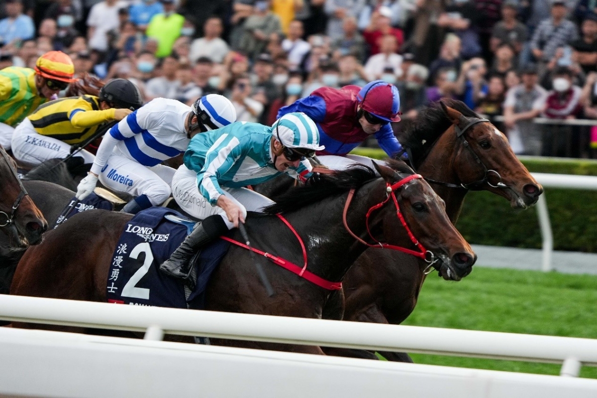 全日壓軸上演的浪琴香港杯(2000米,總獎金3,600萬港元),吸引了11匹來自日本、愛爾蘭、法國與中國香港的代表出戰,大熱門是十月曾揚威澳大利亞覺士盾的中國香港代表“浪漫勇士”。這匹由沈集成訓練、麥道朗策騎的五歲賽駒,目前全球排名12名。最終它不負眾望力壓愛爾蘭代表“盧森堡”奪冠,贏得2,016萬港元獎金,服役以來的總獎金衝破億元大關。賽後,練馬師沈集成表示,這場勝仗得來不易,因為該駒遠征澳大利亞參賽,回港後又要接受檢疫,備戰并不太理想,所以這次賽事贏得相當艱辛,不過這也充分反映該賽駒不屈不撓的體育精神。 另一場浪琴香港短途錦標(1200米,總獎金2,600萬港元),吸引了十匹來自中國香港、日本、英國、與愛爾蘭的短途好手參與。代表中國香港出戰、由文家良訓練的“金鑽貴人”,是全球最高評分的短途佳駟,它在騎師潘頓的策騎下,力壓“幸運有您”,贏得其在港第四場一級賽,獲得1,456萬港元獎金。 同日另一場國際一級賽浪琴香港瓶(2400米,總獎金2,400萬港元),則由法國代表“真強”擊敗其餘七匹對手奪冠。 【編輯:張明臻】