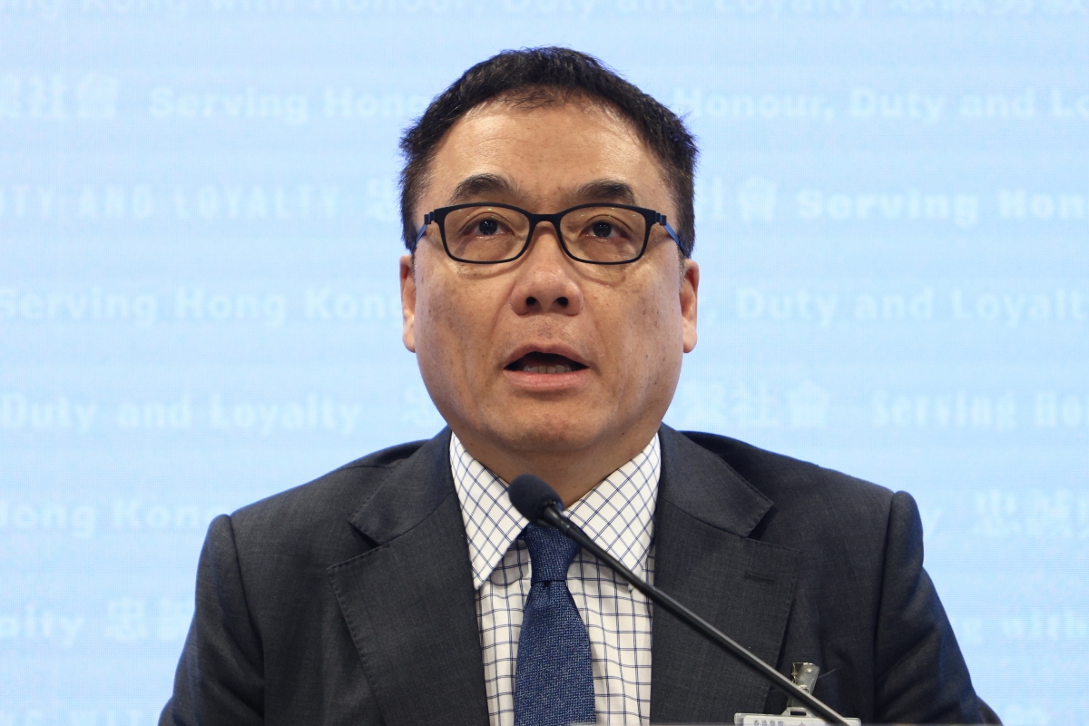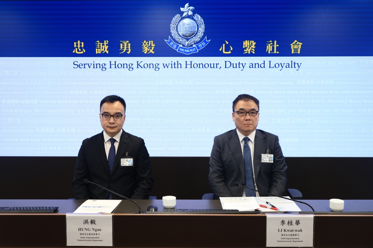 香港警務處國家安全處總警司李桂華(右)及香港警務處國家安全處高級警司洪毅出席記者會