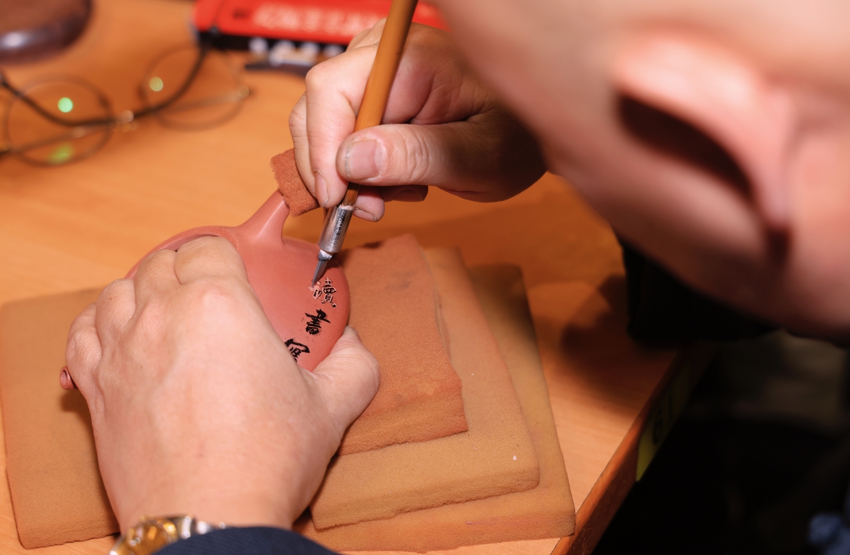 來自江蘇宜興的卓越國家級工藝美術師張繼業、曹梅娟現場示範手工紫砂壺的製作過程