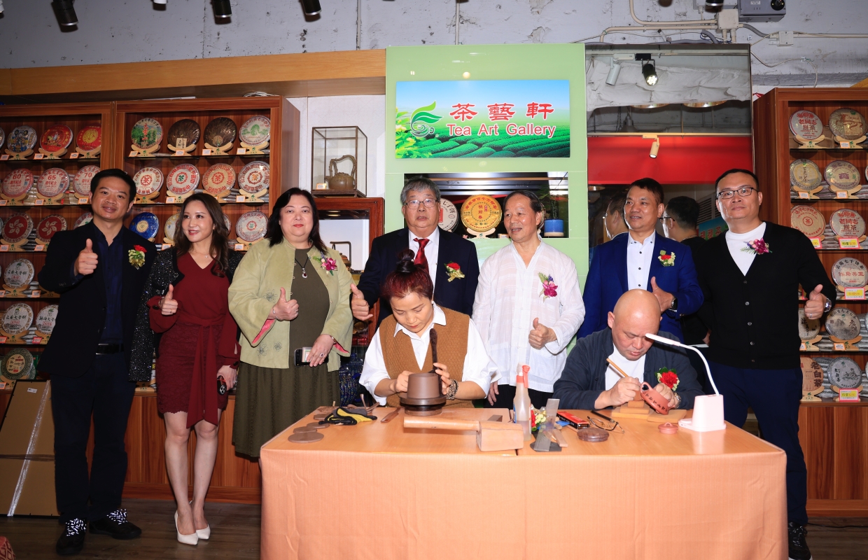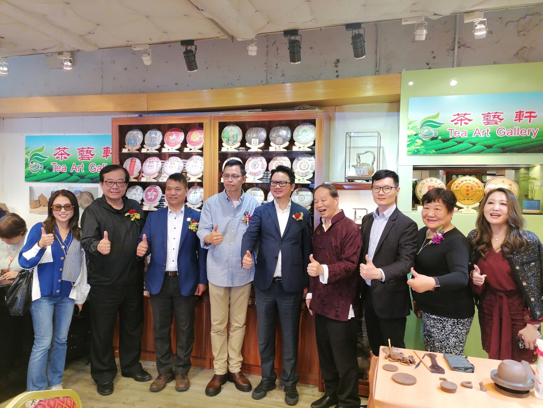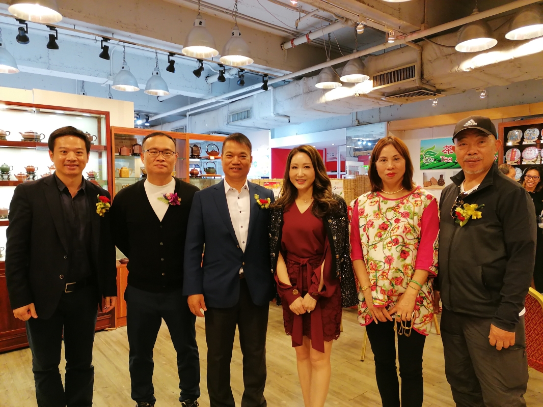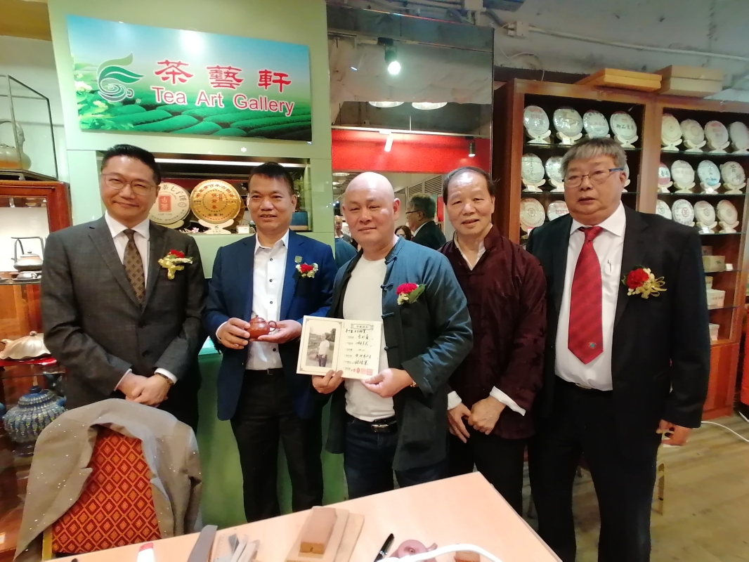 (左起)香港自由黨主席、立法會議員邵家輝、香港荃灣工商業聯合會主席蔡少霖、陶瓷藝術大師張繼業、茶藝軒董事長劉正慶、香港港九茶葉商會理事長林鎮浩