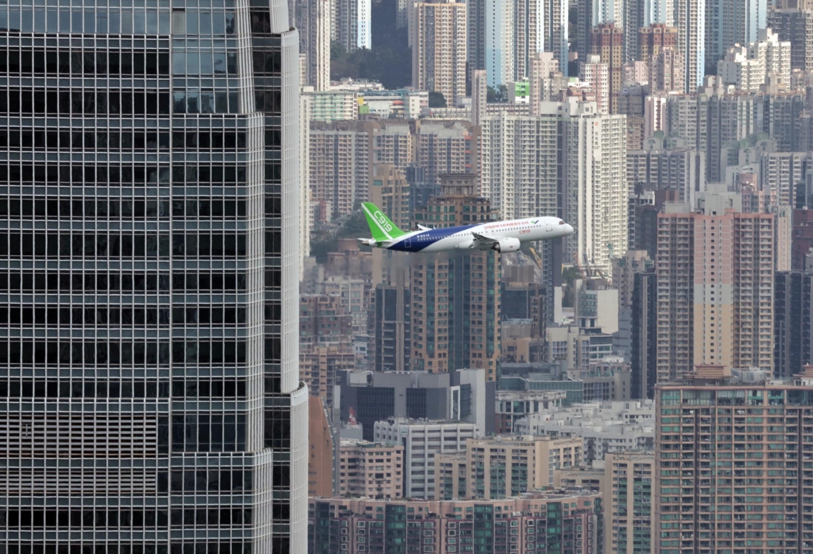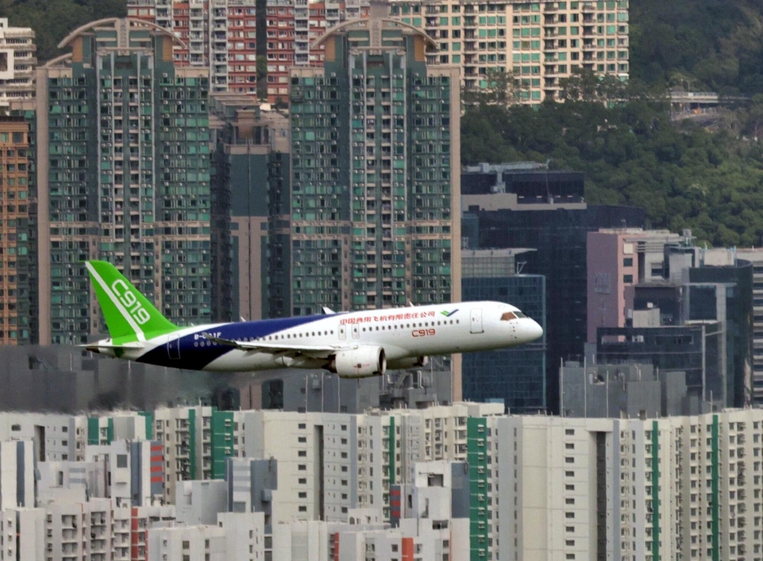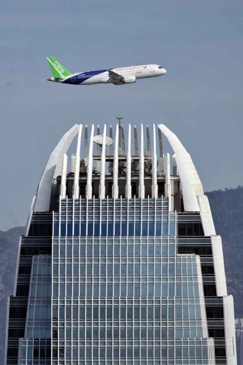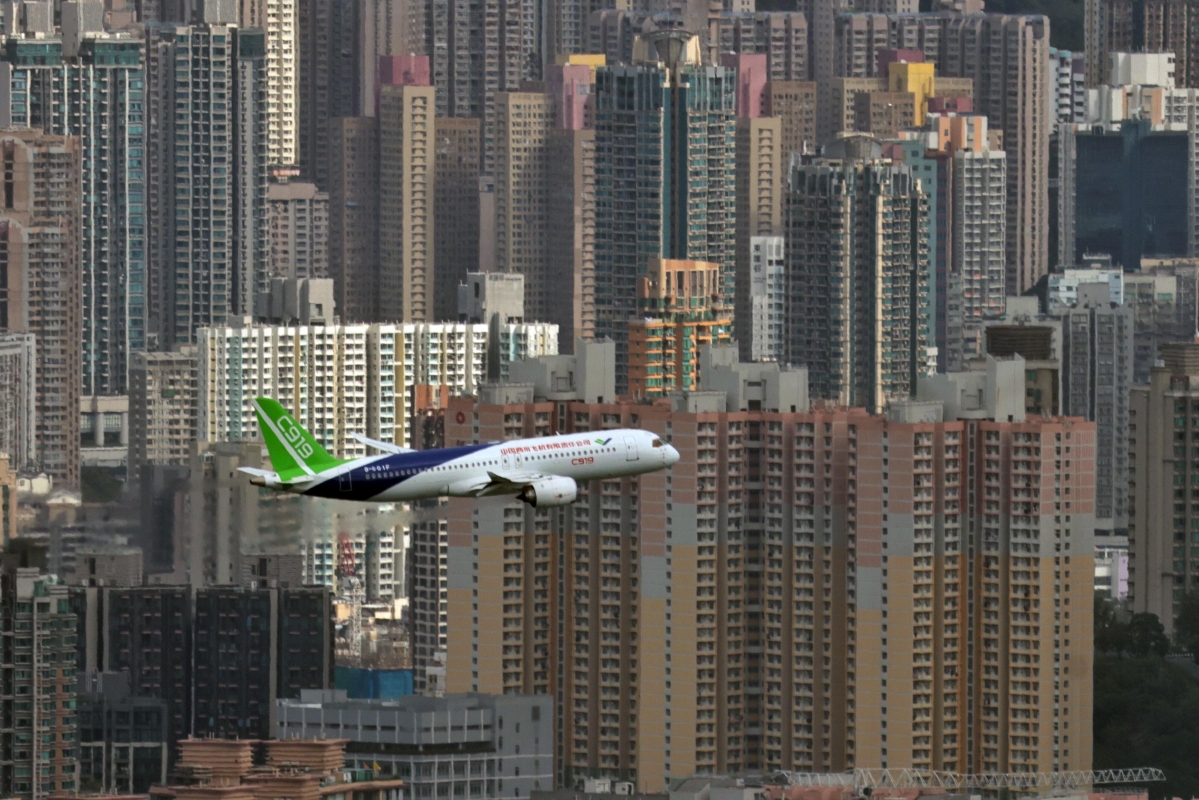 香港新聞網12月16日電(記者謝光磊)12月16日,中國自主研製客機C919飛越香港維港上空作飛行演示,吸引大批市民和遊客在維港兩岸觀看拍照。當天上午香港天氣晴朗,客機C919從香港國際機場起飛,於10點50分左右,由西向東進入及飛越維港上空,環繞香港島兩圈。在港島太平山一大早就有大批攝影發燒友和飛機迷佔好“靚位”,希望拍攝到C919進入維港上空的歷史瞬間。C919客機由中國商用飛機公司研製,是中國首次按照國際通行適航標準,自行研製的噴氣式幹線客機,設158至168個座位,於2022年9月取得中國民航局型號合格證。12月12日至17日,C919飛機和另一架中國自主研製的 ARJ21飛機,首次到訪香港展出,並於13日至16日,在香港國際機場作靜態展示,供香港市民團體參觀。