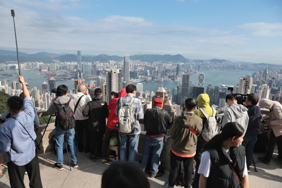 在港島太平山一大早就有大批攝影發燒友和飛機迷佔好“靚位”,希望拍攝到C919進入維港上空的歷史瞬間 【編輯:謝光磊】