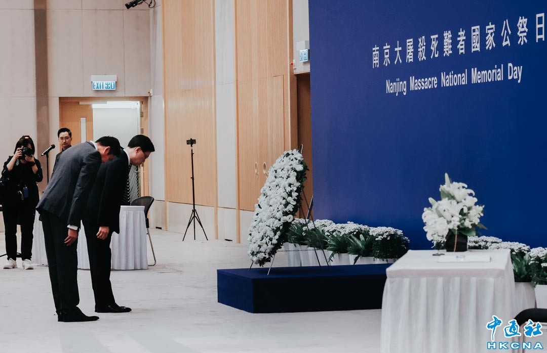 12月13日,香港特區政府在政府總部舉行“南京大屠殺死難者國家公祭日”儀式,特區行政長官李家超(右)出席。(香港中通社記者 曹文毓攝)