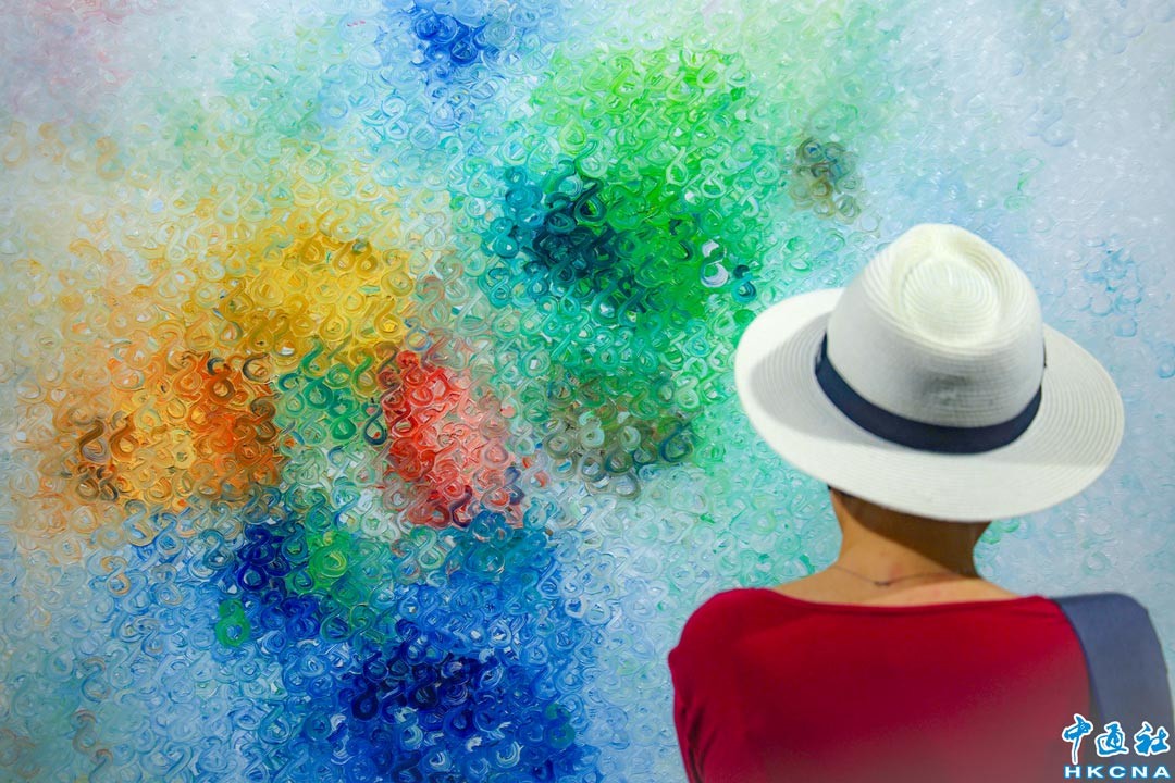 12月15日,藝術家吳哲仁的香港首場個展開幕。展覽呈現了藝術家吳哲仁如何在解構與融合,重組與再現中確立自己的繪畫符號,並在作品中構建出當代的詩意國度。他將德國數學家發明的莫比烏斯環作為自己創作的主要元素,並和中國並非傳統卻又漸成傳統的數字“8”結合起來,重組並演繹了介於真實與夢境,東方與西方的全新的視覺世界。(香港中通社記者 許其皓攝)