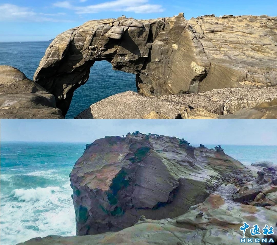 12月16日下午台灣新北市東北角海域最有名的岩壁象鼻岩,傳出遭海浪拍打鼻子被打斷,讓很多人震驚,象鼻岩一直是陸上的旅遊熱點,也是海上娛樂船也是必訪之點,瑞芳區公所委外保全發現象鼻岩鼻子突然崩落,整個鼻子斷裂消失在海中,立即通報區公所,初步了解是長期風化、海浪拍打所致。香港中通社圖片